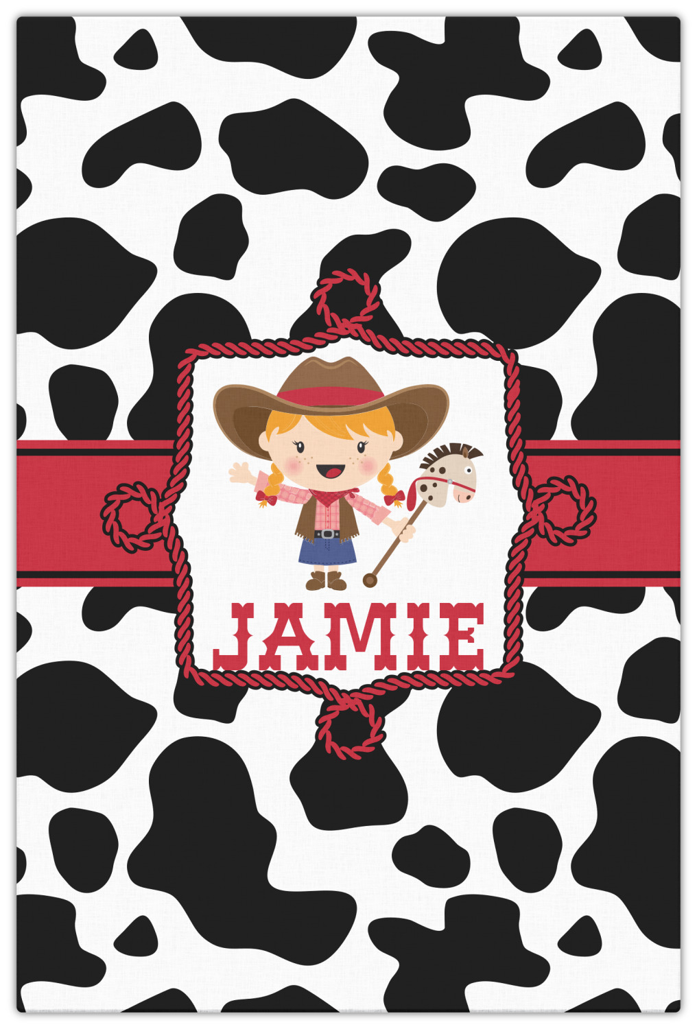 This western themed design is perfect a cowboy or cowgirl. The background is cow print, with a red ribbon in the center. The label is made of rope and you can customize it by choosing a cowgirl or a cowboy.