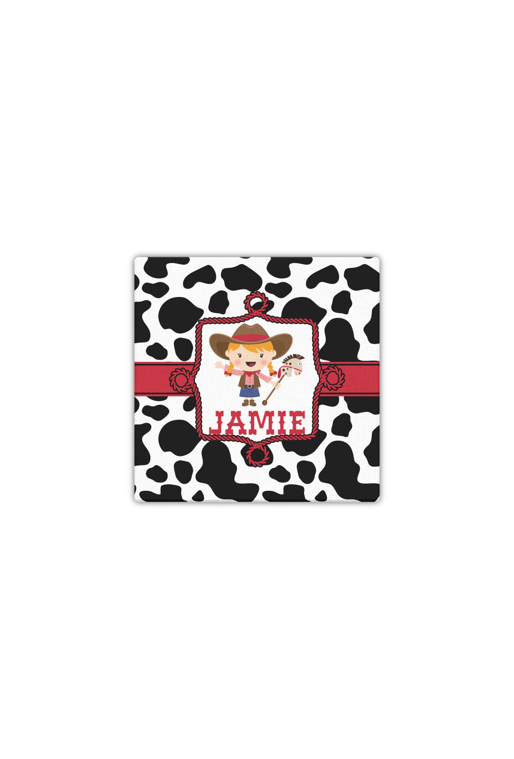 This western themed design is perfect a cowboy or cowgirl. The background is cow print, with a red ribbon in the center. The label is made of rope and you can customize it by choosing a cowgirl or a cowboy.