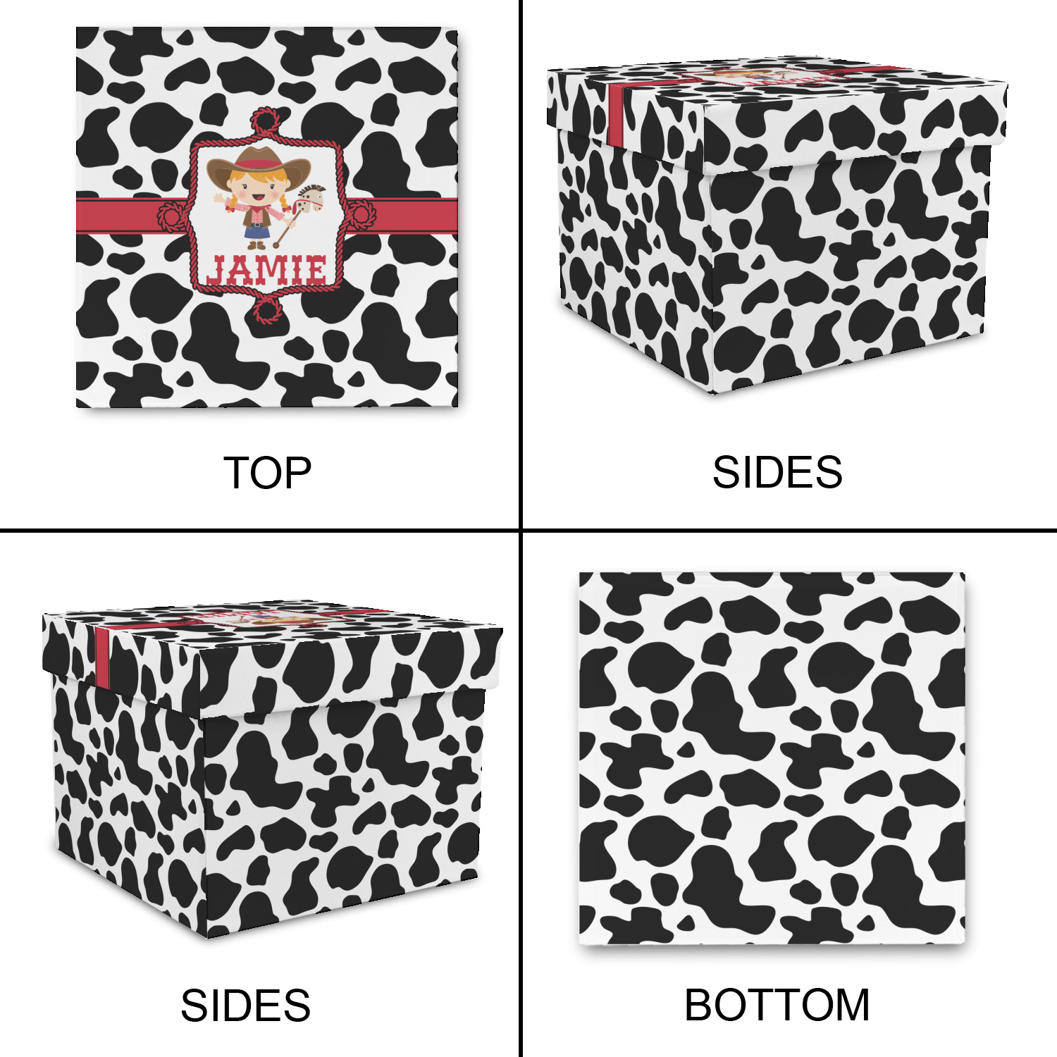 This western themed design is perfect a cowboy or cowgirl. The background is cow print, with a red ribbon in the center. The label is made of rope and you can customize it by choosing a cowgirl or a cowboy.