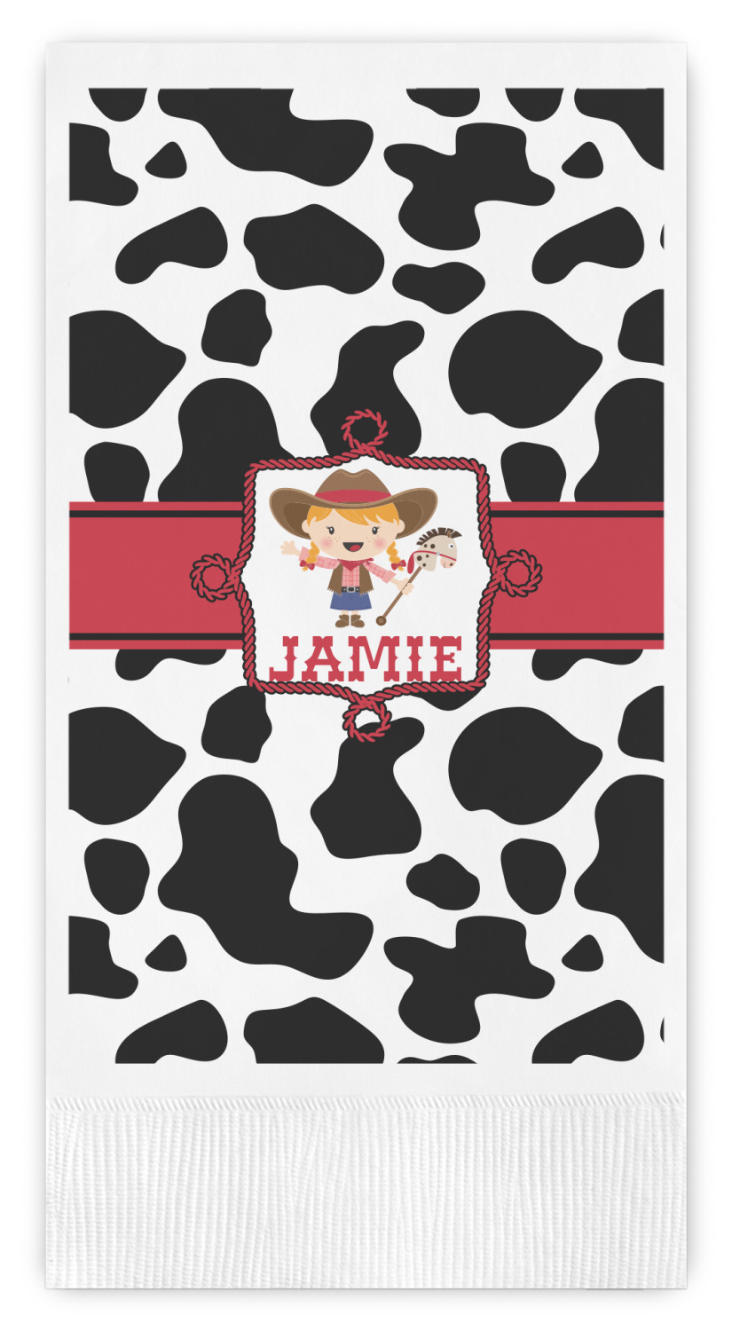 This western themed design is perfect a cowboy or cowgirl. The background is cow print, with a red ribbon in the center. The label is made of rope and you can customize it by choosing a cowgirl or a cowboy.