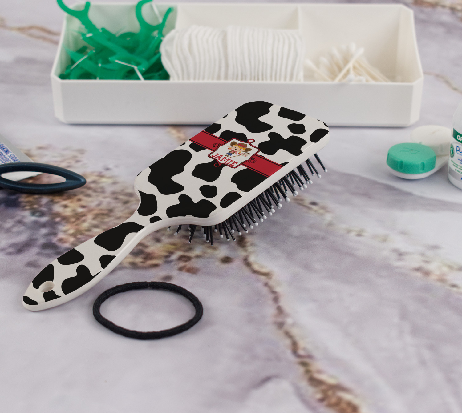 Our paddle style customizable hair brushes are perfect for all hair types- straight, curly, wavy, long, short, thick or textured.