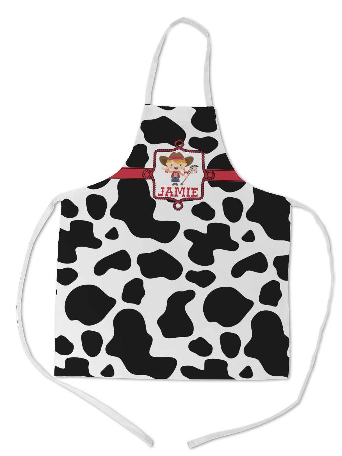 This western themed design is perfect a cowboy or cowgirl. The background is cow print, with a red ribbon in the center. The label is made of rope and you can customize it by choosing a cowgirl or a cowboy.