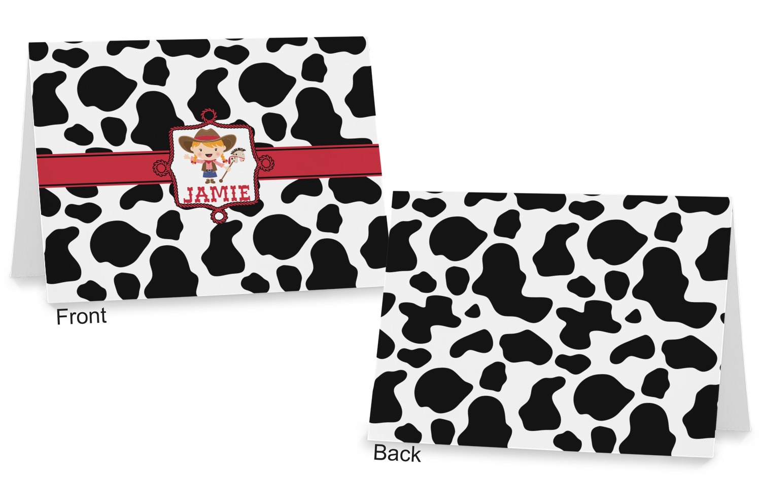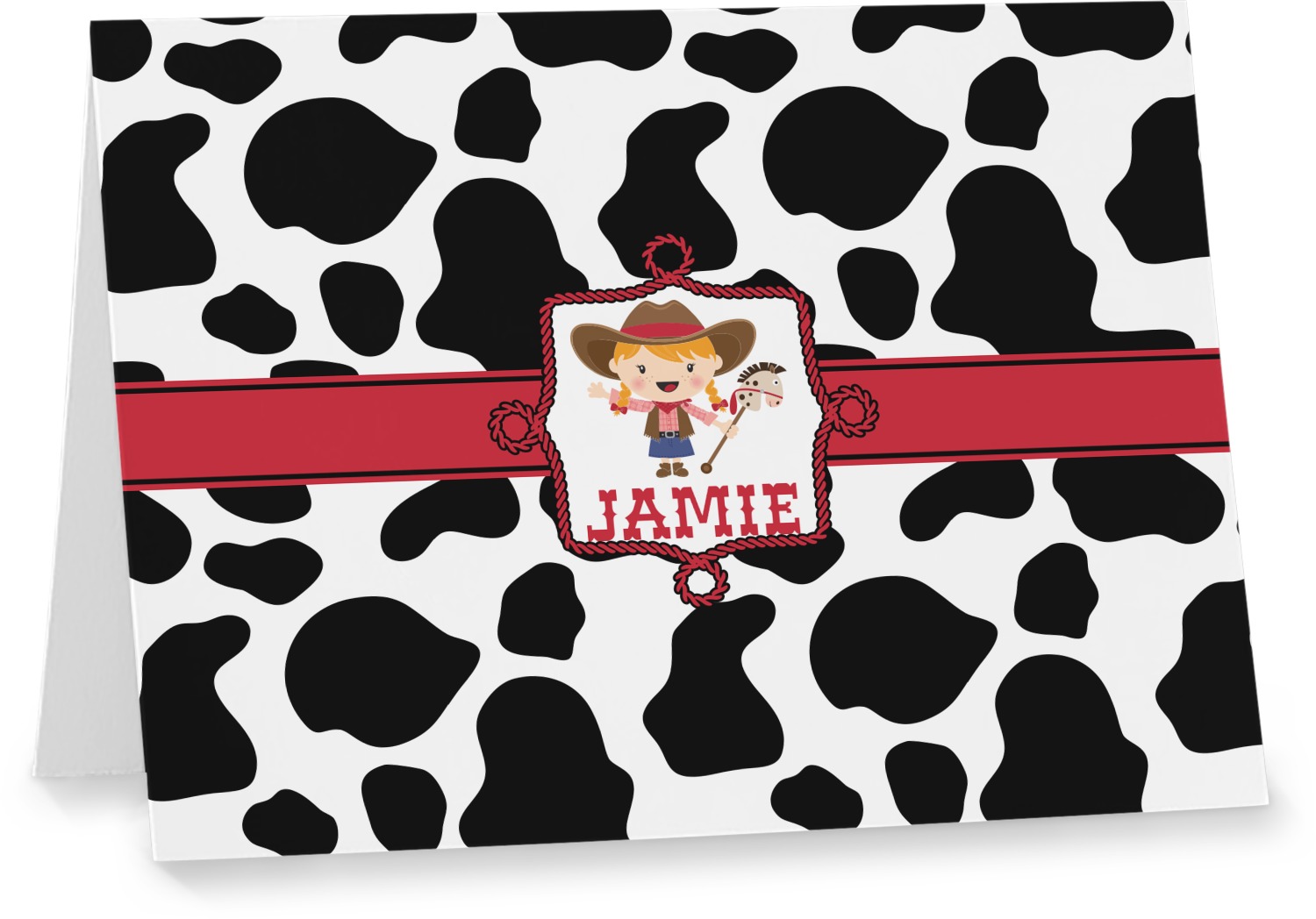 This western themed design is perfect a cowboy or cowgirl. The background is cow print, with a red ribbon in the center. The label is made of rope and you can customize it by choosing a cowgirl or a cowboy.