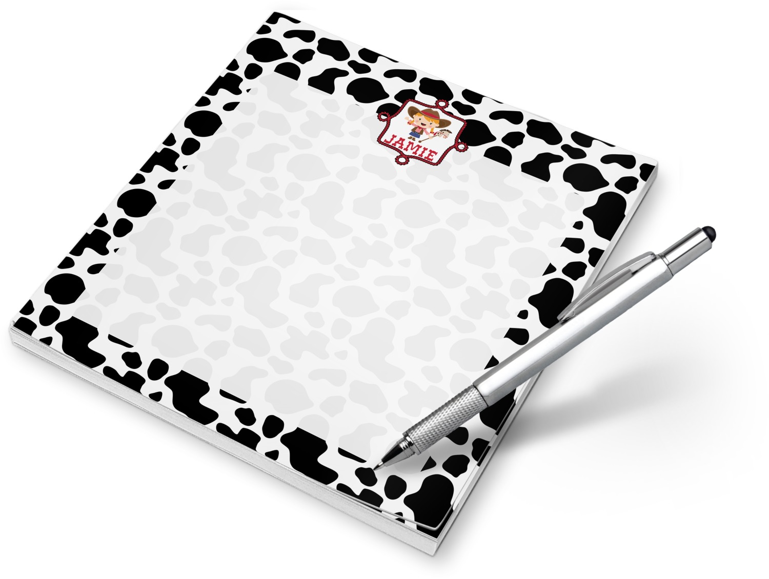 Your custom notepad features 50 sheets of thick, white paper, with your customization in the background and the edges. At approximately 6" x 5.5", these personalized memo pads are slightly larger than your average notepad. The individual notes tear easily from binding, which allows for quick, convenient, note-taking.