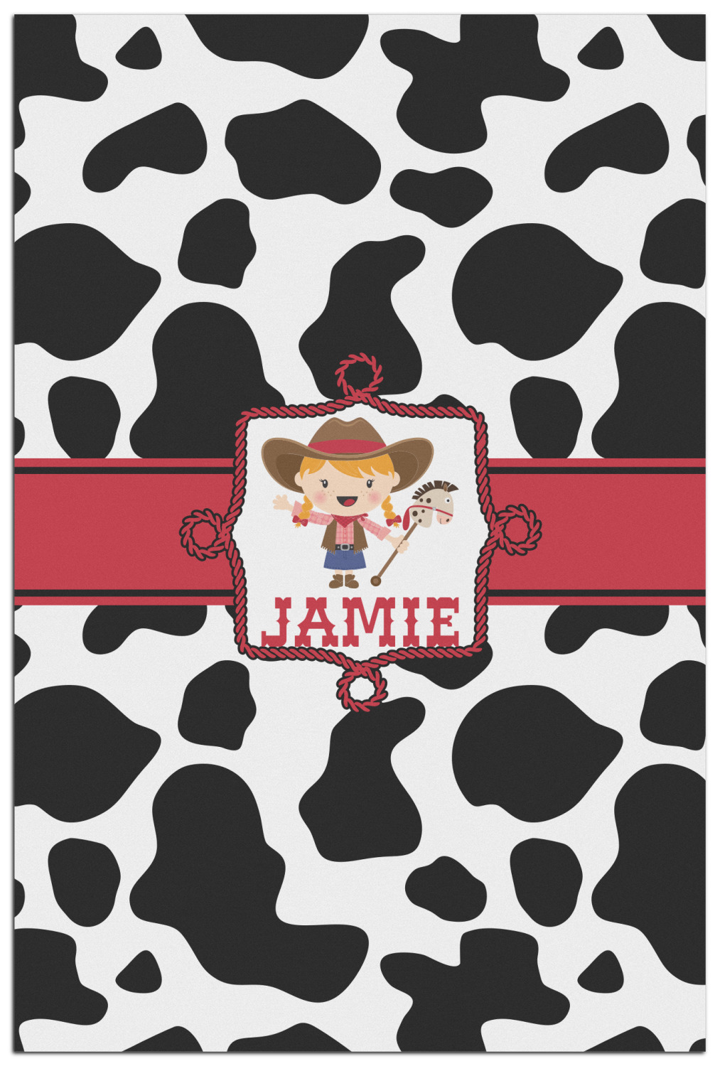 This western themed design is perfect a cowboy or cowgirl. The background is cow print, with a red ribbon in the center. The label is made of rope and you can customize it by choosing a cowgirl or a cowboy.