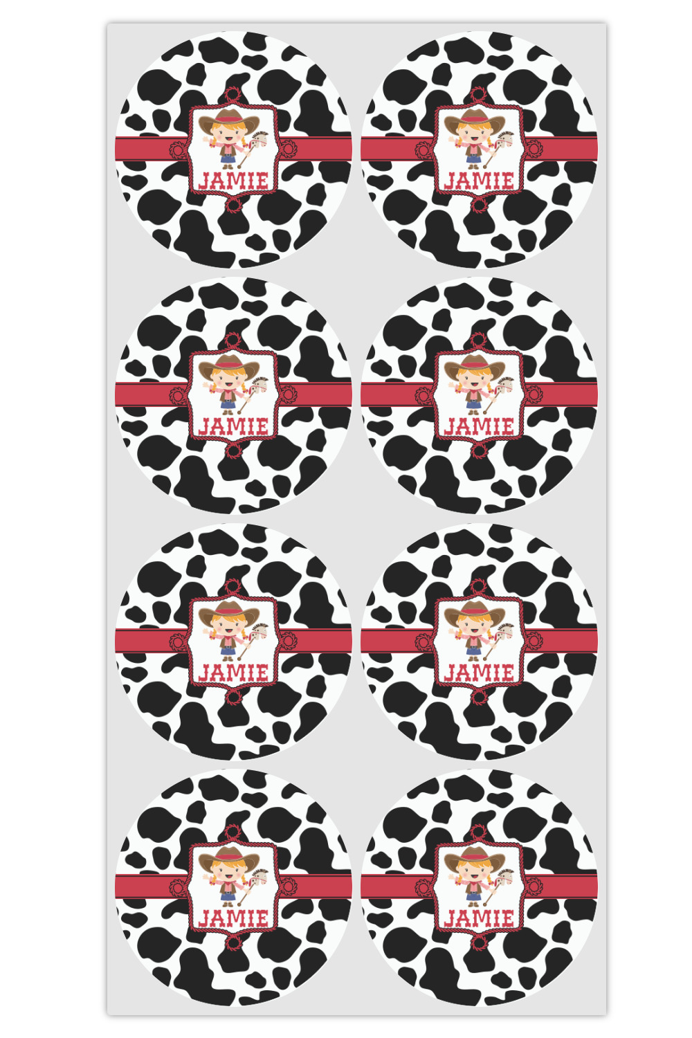 This western themed design is perfect a cowboy or cowgirl. The background is cow print, with a red ribbon in the center. The label is made of rope and you can customize it by choosing a cowgirl or a cowboy.