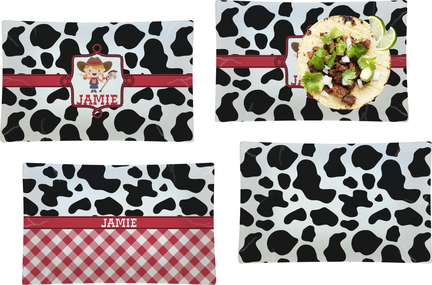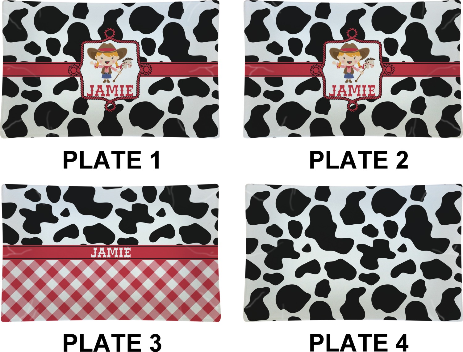 This western themed design is perfect a cowboy or cowgirl. The background is cow print, with a red ribbon in the center. The label is made of rope and you can customize it by choosing a cowgirl or a cowboy.