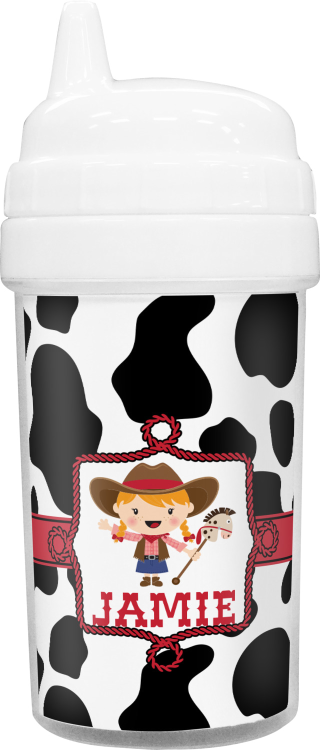 Our toddler cups are free of BPA, and have a twist-open lid so that you can easily fill and clean these cups for your young ones. Each cup also comes with a sippy nozzle to reduce spills. We offer these custom sippy cups in two different sizes; we have a baby sippy cup that holds 5 ounces, and a toddler sippy cup that holds 10 ounces. Your customization is printed on a premium glossy media insert that is placed within these toddler drinking cups.
