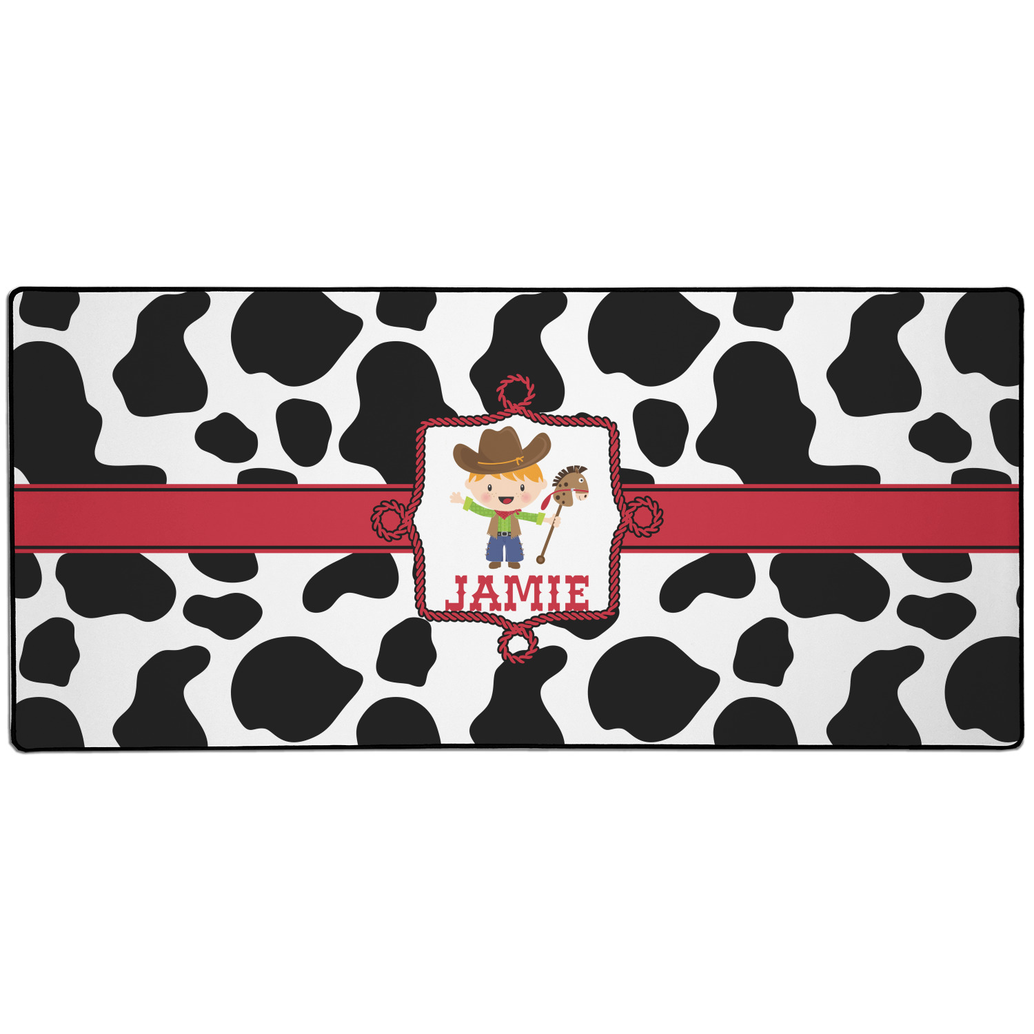 This western themed design is perfect for a cowboy or cowgirl. The background is cow print, with a red ribbon in the center. The label is made of rope and you can customize it by choosing a cowgirl or a cowboy.