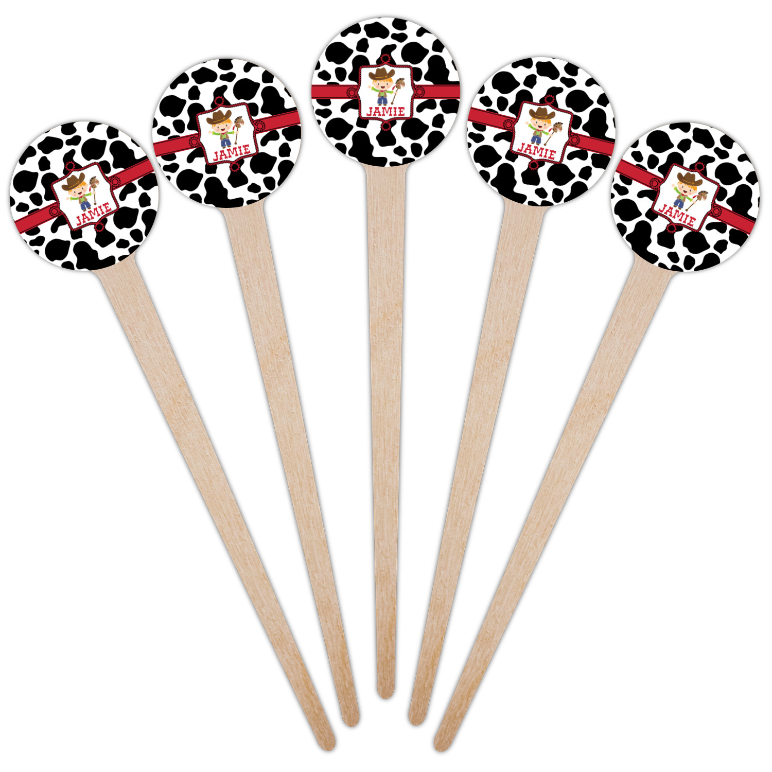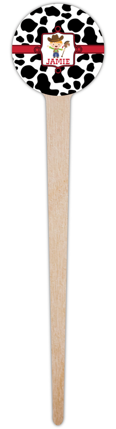 This western themed design is perfect for a cowboy or cowgirl. The background is cow print, with a red ribbon in the center. The label is made of rope and you can customize it by choosing a cowgirl or a cowboy.