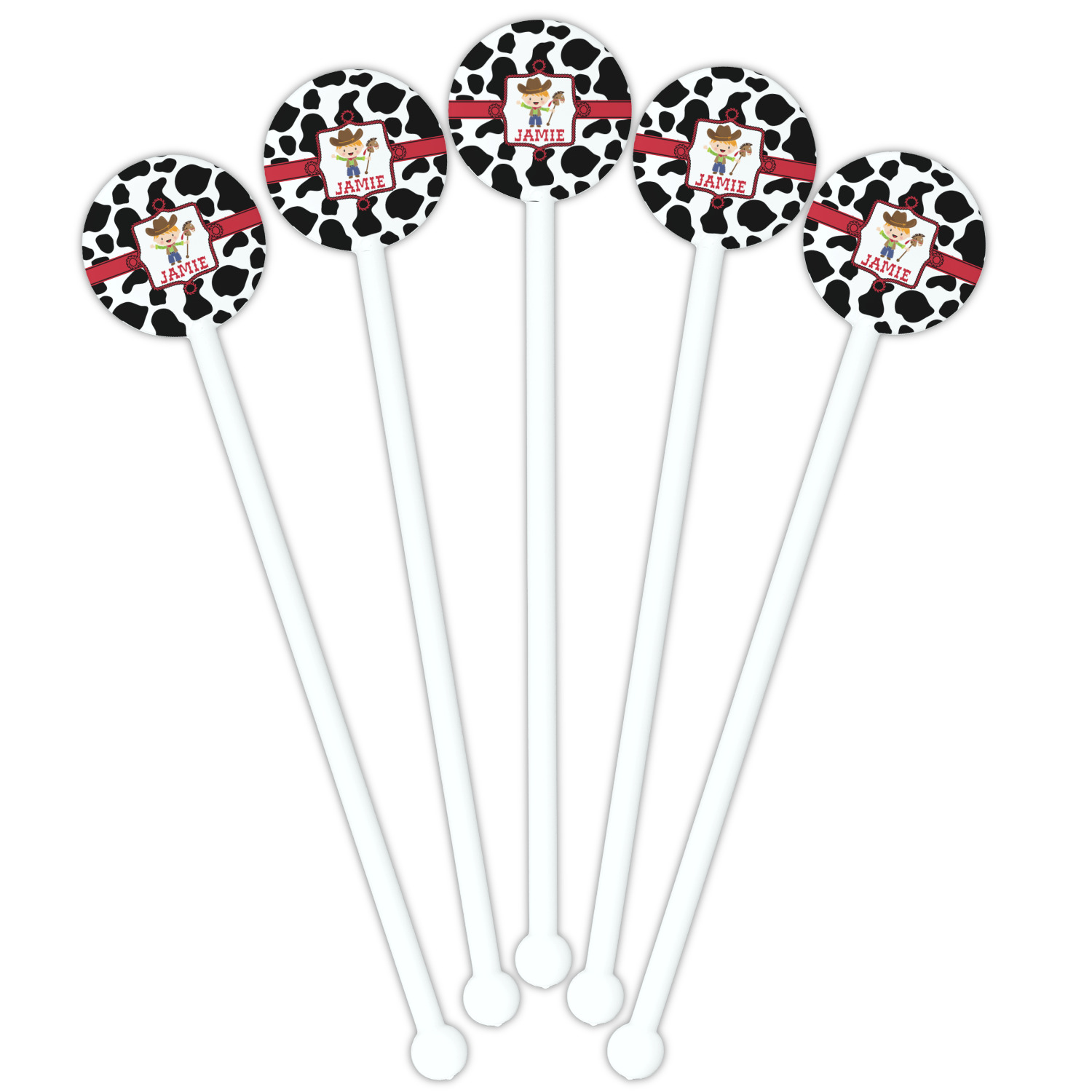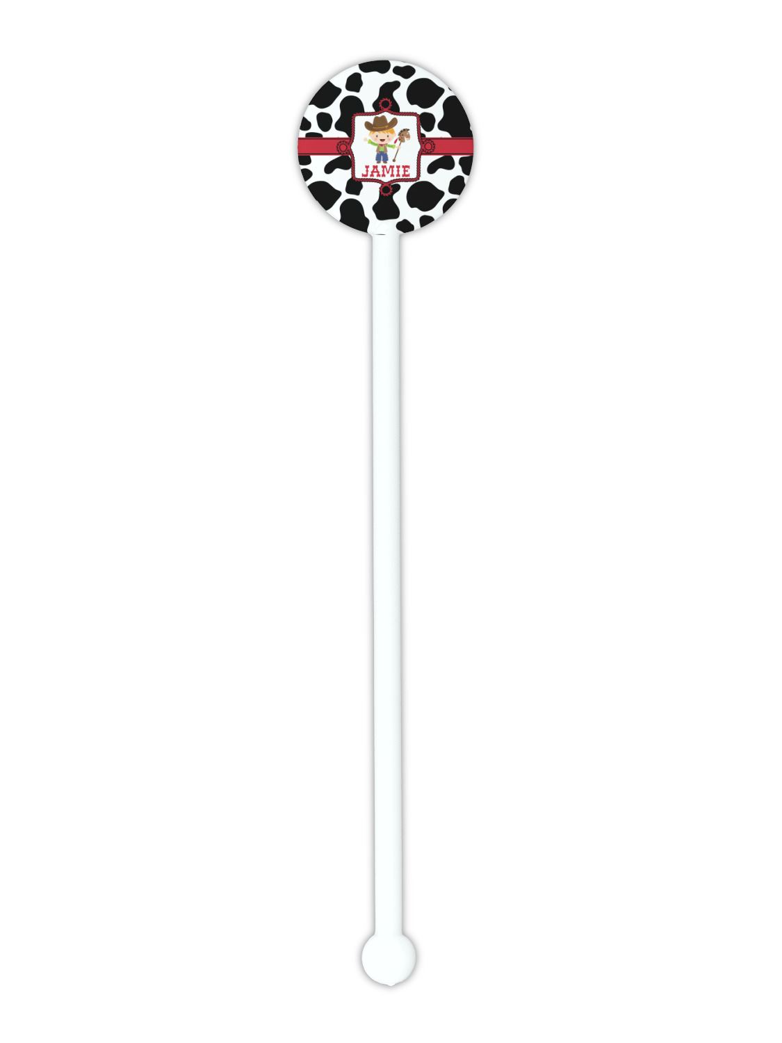 This western themed design is perfect for a cowboy or cowgirl. The background is cow print, with a red ribbon in the center. The label is made of rope and you can customize it by choosing a cowgirl or a cowboy.