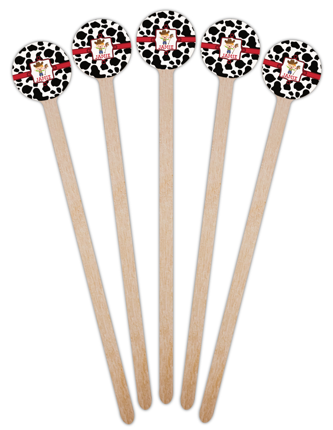 This western themed design is perfect for a cowboy or cowgirl. The background is cow print, with a red ribbon in the center. The label is made of rope and you can customize it by choosing a cowgirl or a cowboy.