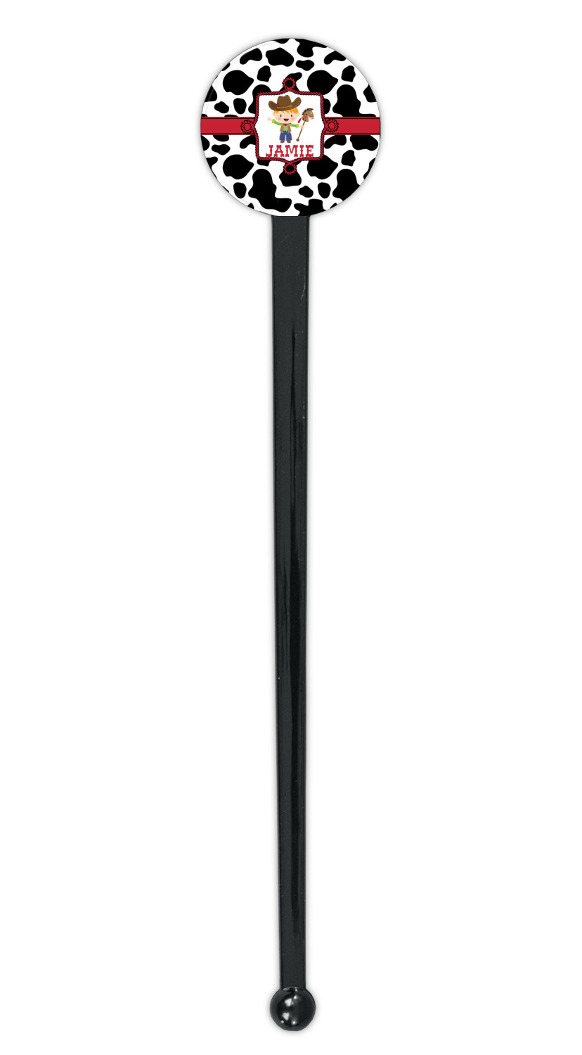 This western themed design is perfect for a cowboy or cowgirl. The background is cow print, with a red ribbon in the center. The label is made of rope and you can customize it by choosing a cowgirl or a cowboy.