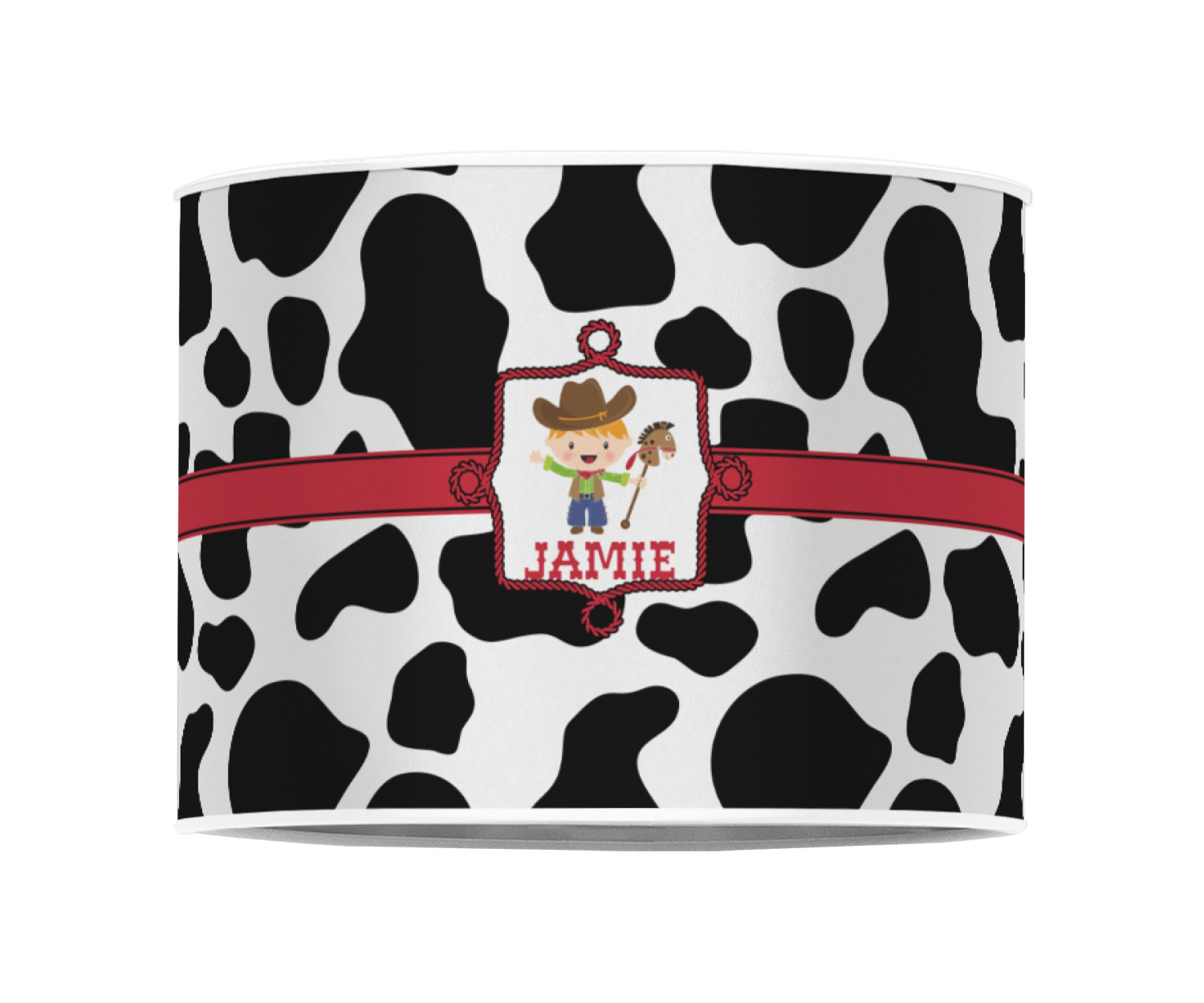 This western themed design is perfect for a cowboy or cowgirl. The background is cow print, with a red ribbon in the center. The label is made of rope and you can customize it by choosing a cowgirl or a cowboy.
