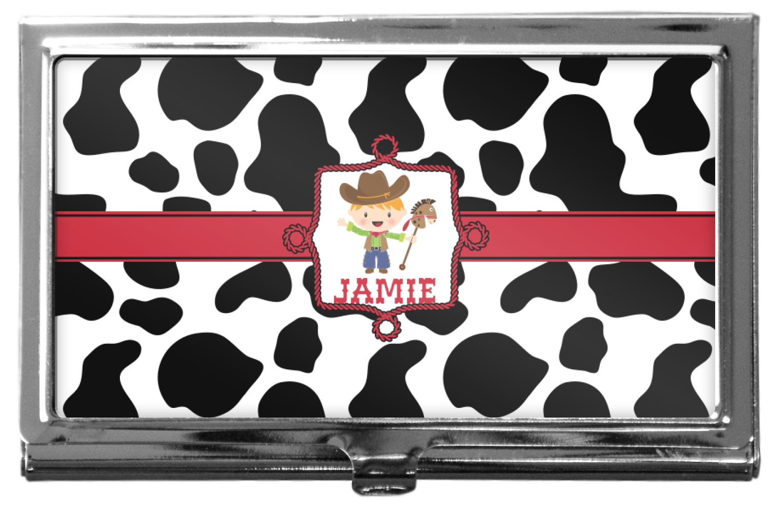 This western themed design is perfect for a cowboy or cowgirl. The background is cow print, with a red ribbon in the center. The label is made of rope and you can customize it by choosing a cowgirl or a cowboy.