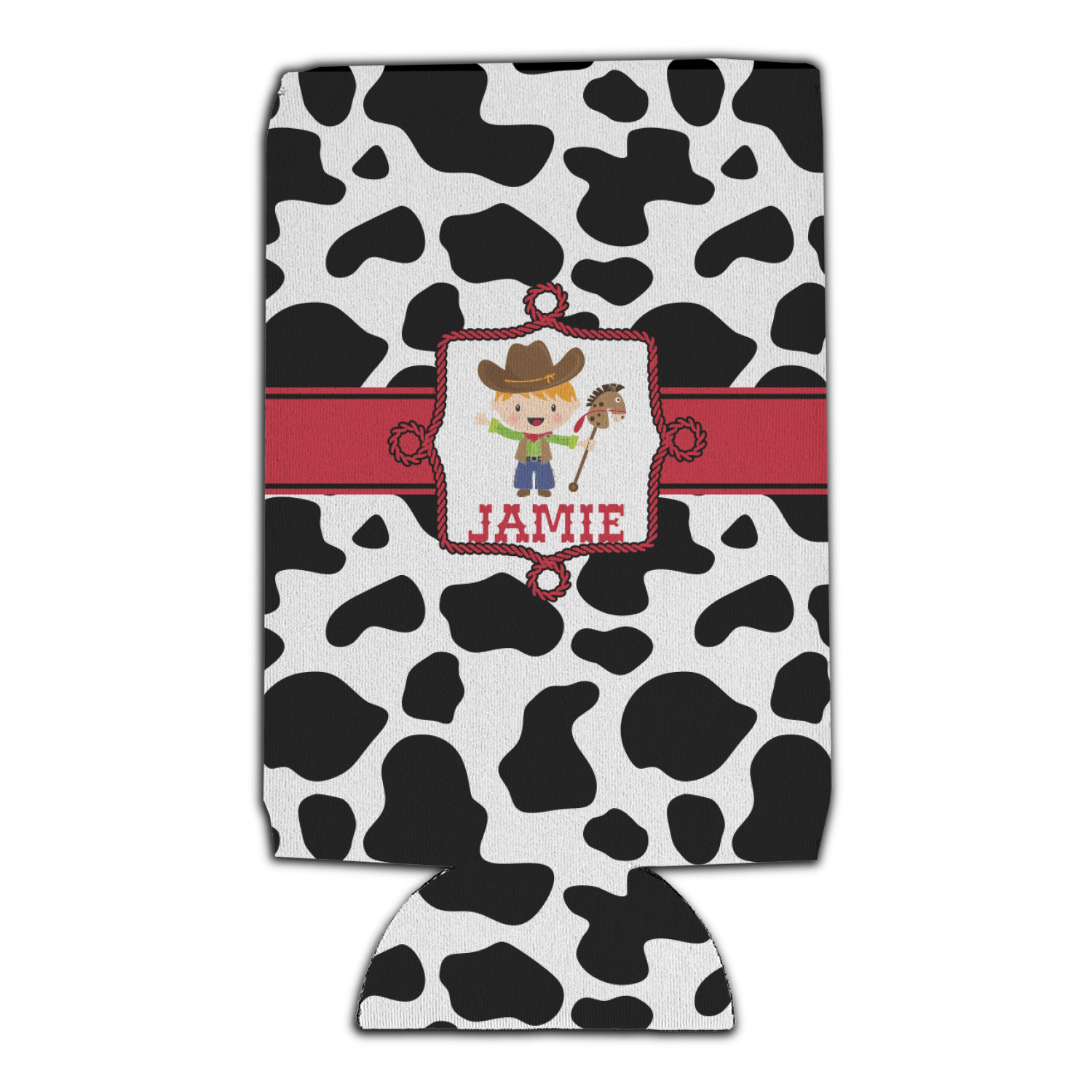This western themed design is perfect for a cowboy or cowgirl. The background is cow print, with a red ribbon in the center. The label is made of rope and you can customize it by choosing a cowgirl or a cowboy.