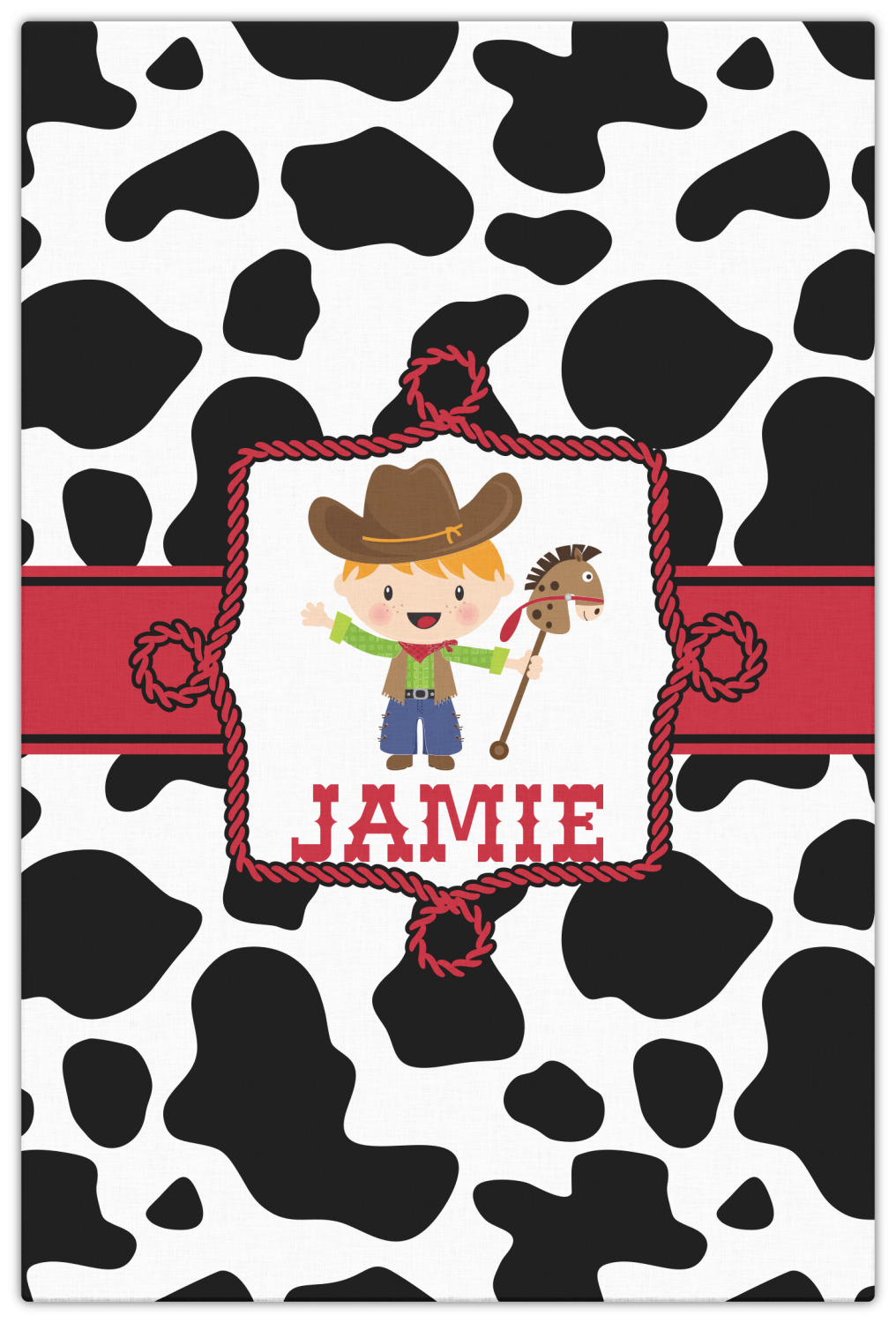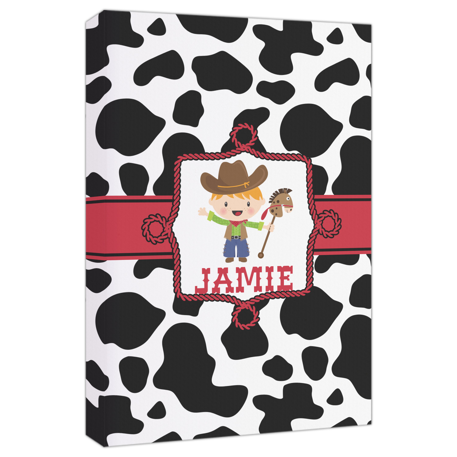 This western themed design is perfect for a cowboy or cowgirl. The background is cow print, with a red ribbon in the center. The label is made of rope and you can customize it by choosing a cowgirl or a cowboy.