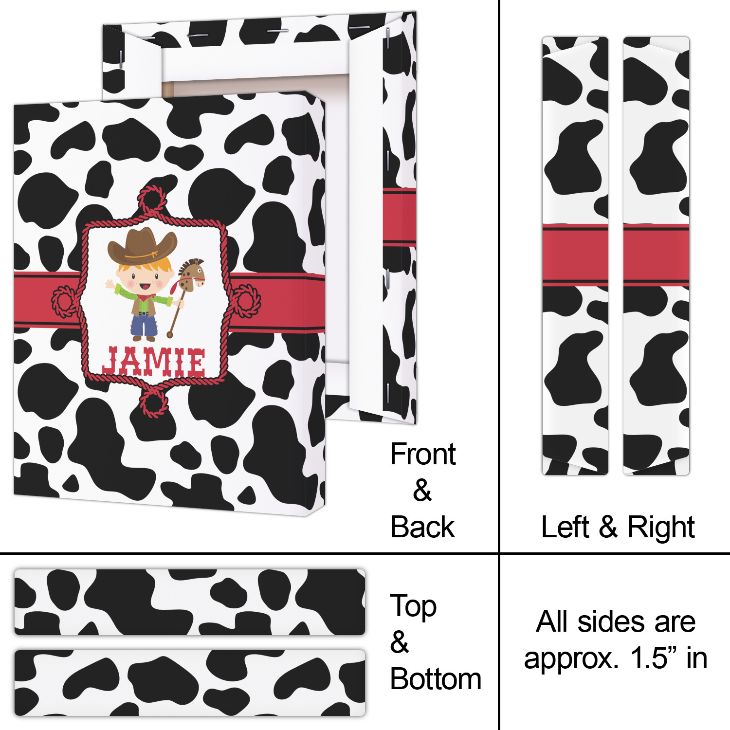 This western themed design is perfect for a cowboy or cowgirl. The background is cow print, with a red ribbon in the center. The label is made of rope and you can customize it by choosing a cowgirl or a cowboy.