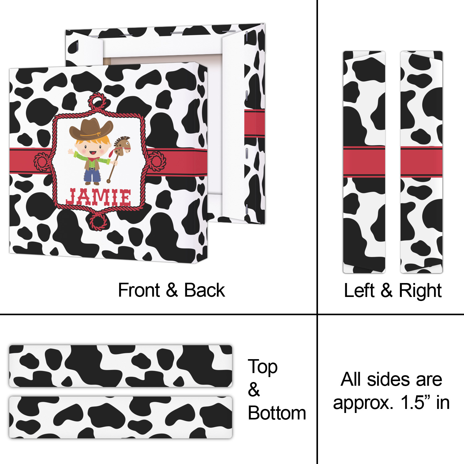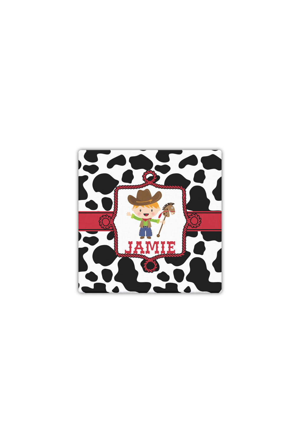 This western themed design is perfect for a cowboy or cowgirl. The background is cow print, with a red ribbon in the center. The label is made of rope and you can customize it by choosing a cowgirl or a cowboy.