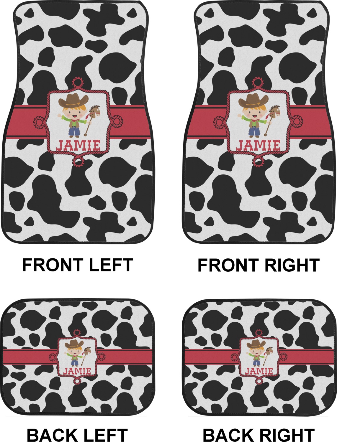 We craft our auto floor mats mats from polyester, apply a black finish to the edges, and lined at the bottom to prevent slippage. These mats protect your floors from grass, mud, and any accidental spills. We display your personalized design on the front face of each mat. The sizes of these car floor liners are standardized to provide a versatile fit for all vehicles. The front rows car mats measure at 17 by 26.5 inches, while the back rows measure at 17 by 13 inches. We sell three packages of car floor mats. You can purchase a pair of front row car mats, a pair of back row car mats, or a set of front row and back row car mats. To make an informed purchase, we recommend measuring the surface area of your car floors.