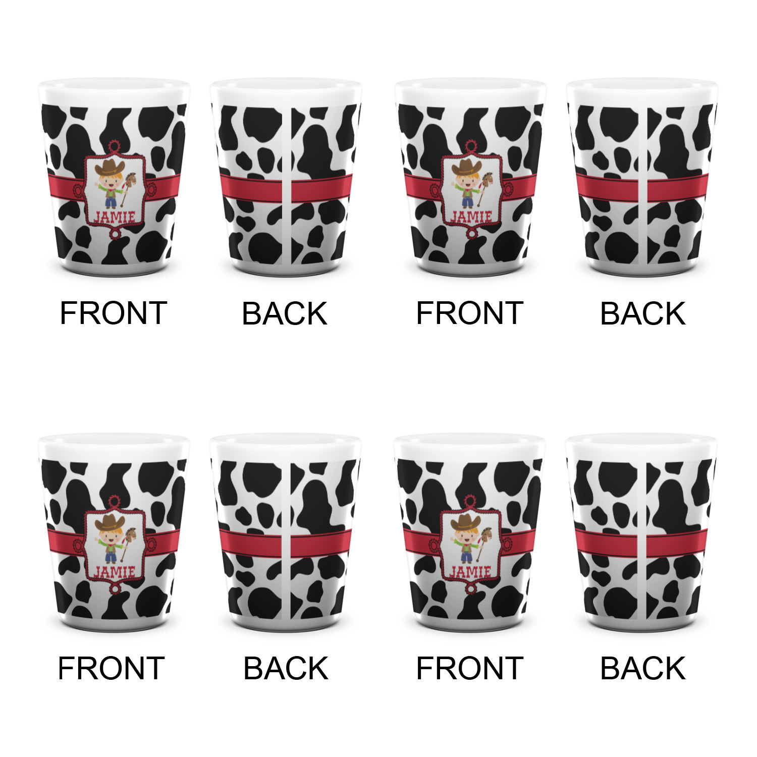 Made from ceramic these shot glasses are printed in full color with the design of your choice. These are a standard 1.5oz size and stand 2.25" tall. Available in a full white ceramic or a two-tone with a black color inside the shot glass. Buy a single or a set of 4, all of which can be designed separately to get you just what you want and need.