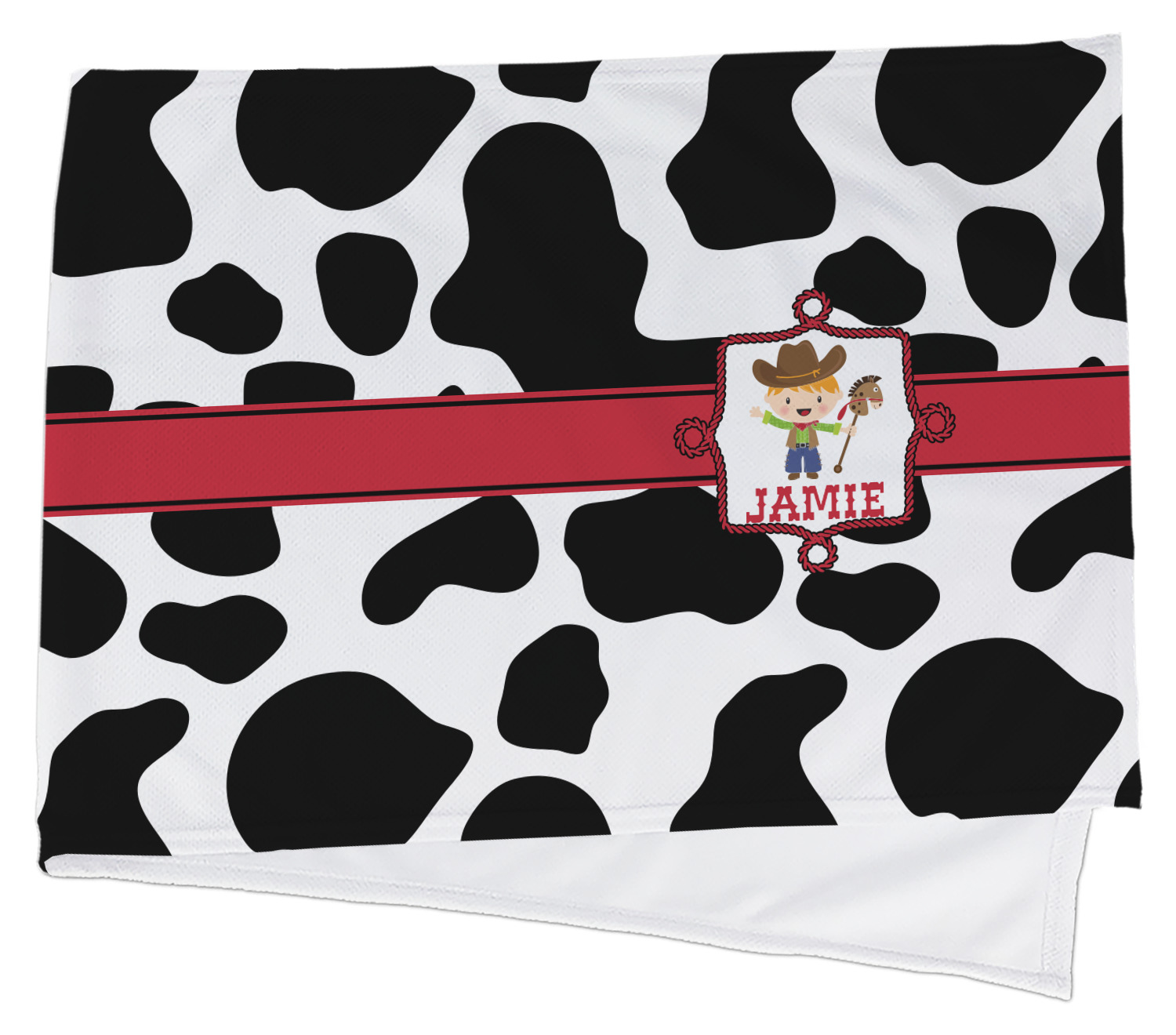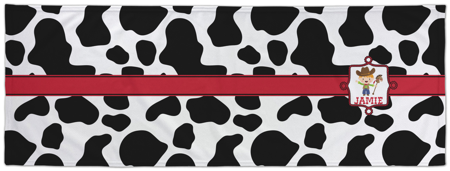 This western themed design is perfect for a cowboy or cowgirl. The background is cow print, with a red ribbon in the center. The label is made of rope and you can customize it by choosing a cowgirl or a cowboy.