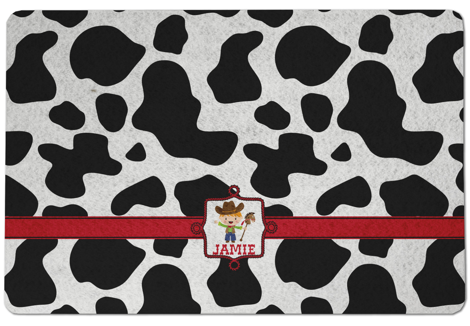 This western themed design is perfect for a cowboy or cowgirl. The background is cow print, with a red ribbon in the center. The label is made of rope and you can customize it by choosing a cowgirl or a cowboy.