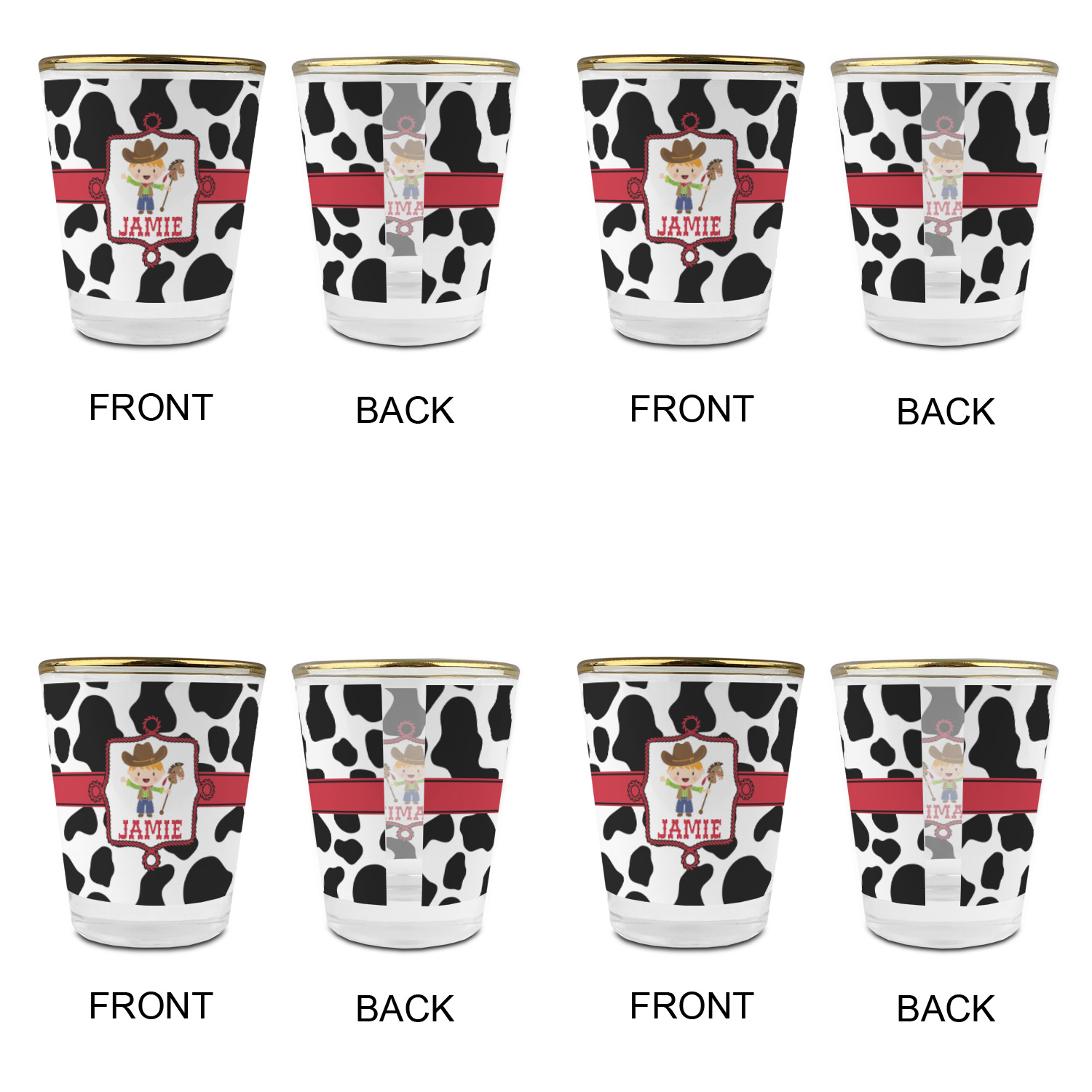 Made with frosted glass, these shot glasses are printed in full color with the design of your choice. They are a standard 1.5oz shot glass and are 2.4" tall. The print is wrapped around the shot glass in a full wrap and boldly displays your customization.