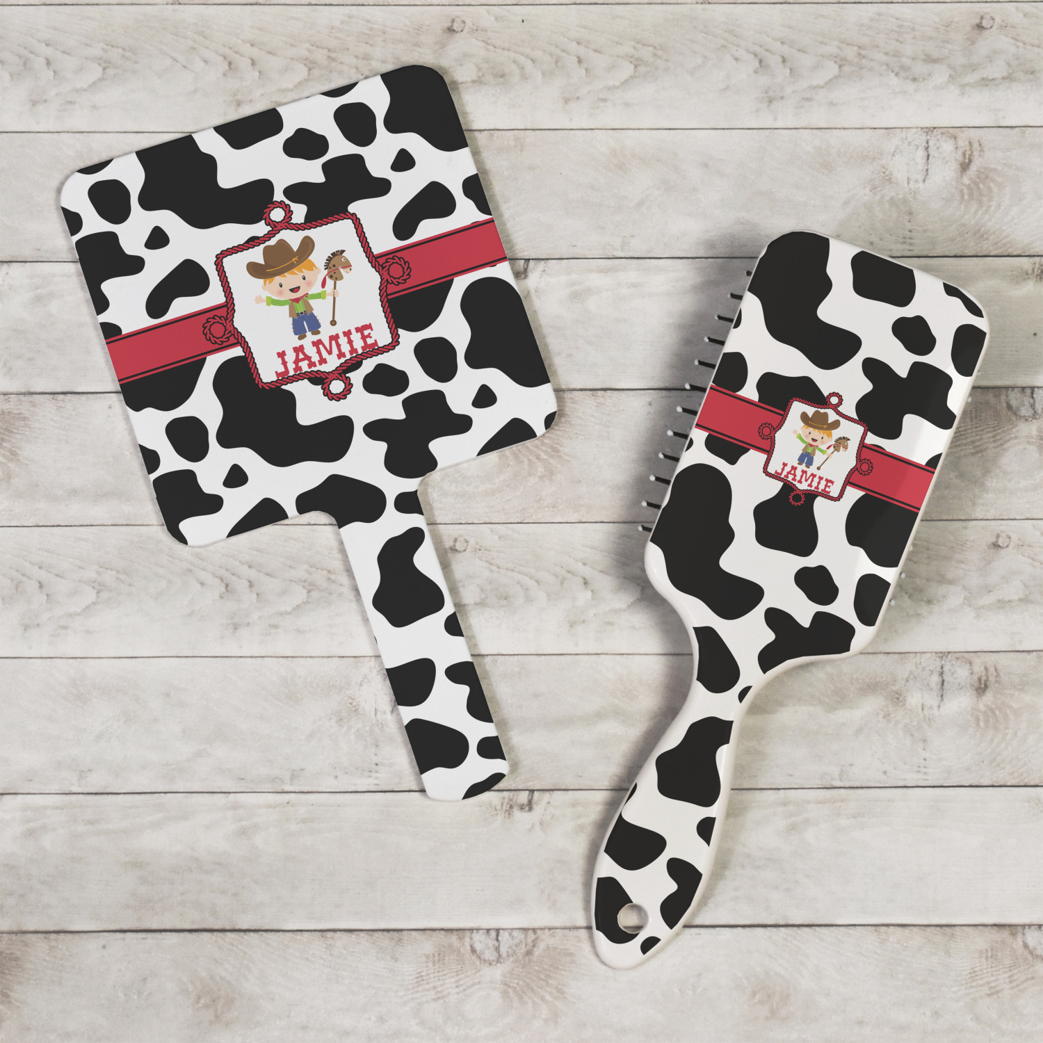 This western themed design is perfect for a cowboy or cowgirl. The background is cow print, with a red ribbon in the center. The label is made of rope and you can customize it by choosing a cowgirl or a cowboy.