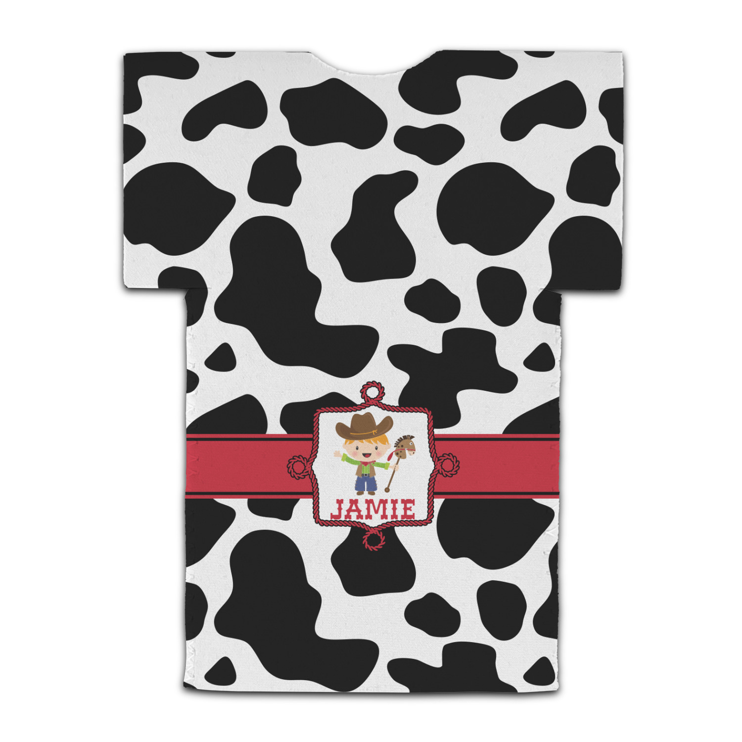 This western themed design is perfect for a cowboy or cowgirl. The background is cow print, with a red ribbon in the center. The label is made of rope and you can customize it by choosing a cowgirl or a cowboy.