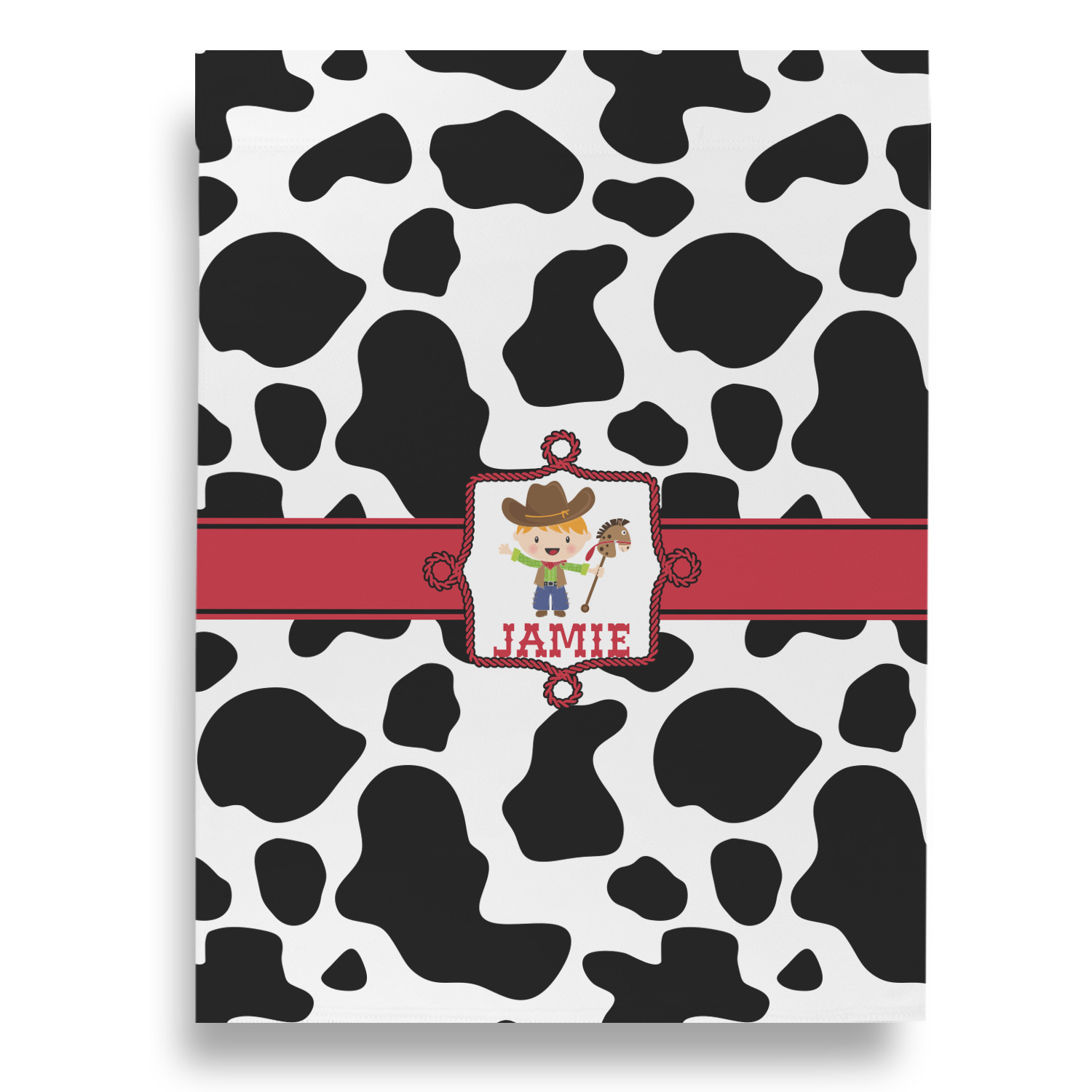This western themed design is perfect for a cowboy or cowgirl. The background is cow print, with a red ribbon in the center. The label is made of rope and you can customize it by choosing a cowgirl or a cowboy.