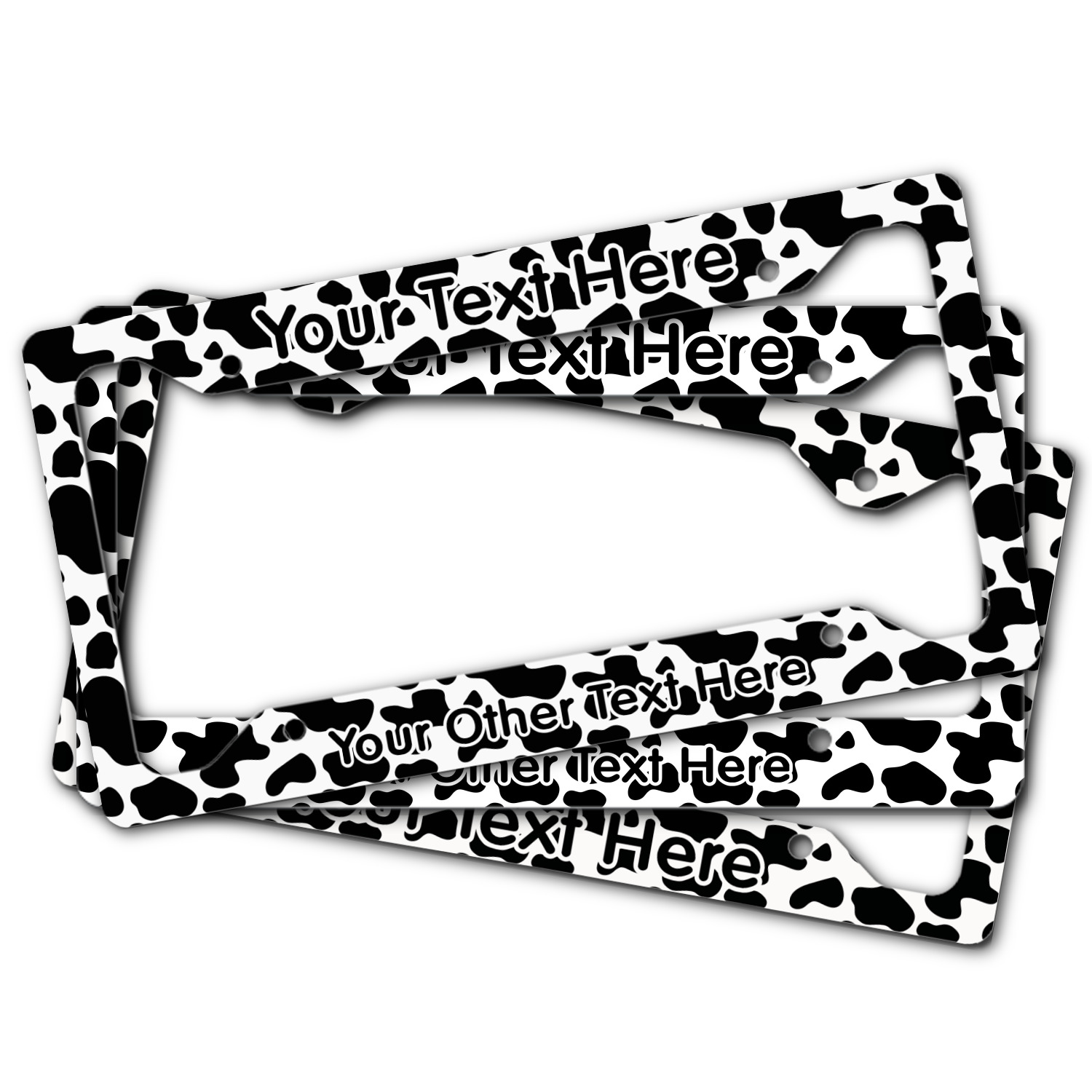 Each customizable license plate frame is made from a fine, yet sturdy aluminum material that measures approximately 6.5 x 12.15 inches, accommodating most standard license plates. The thickness allows the license plate frame to adhere completely to your license plate for a seamless look. We carry 3 styles of license plate frames to customize - Style A has texts on top and bottom, Style B offers texts on top and bottom as well as a full fill bottom border, and Style C offers text at the bottom only. The personalized license plate frame comes with four mounting holes for easy installation! We print each custom design across the frame with a glossy finish.
