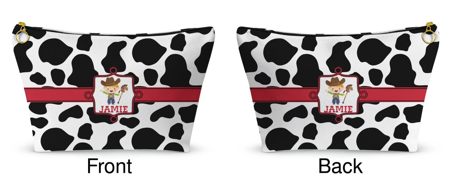 This western themed design is perfect for a cowboy or cowgirl. The background is cow print, with a red ribbon in the center. The label is made of rope and you can customize it by choosing a cowgirl or a cowboy.
