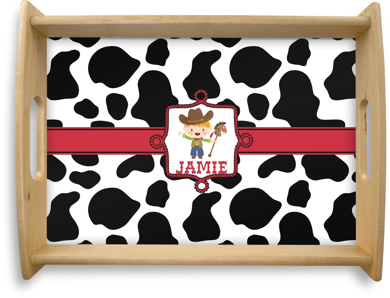 This western themed design is perfect for a cowboy or cowgirl. The background is cow print, with a red ribbon in the center. The label is made of rope and you can customize it by choosing a cowgirl or a cowboy.