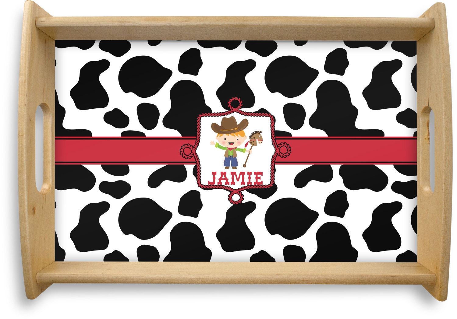 This western themed design is perfect for a cowboy or cowgirl. The background is cow print, with a red ribbon in the center. The label is made of rope and you can customize it by choosing a cowgirl or a cowboy.