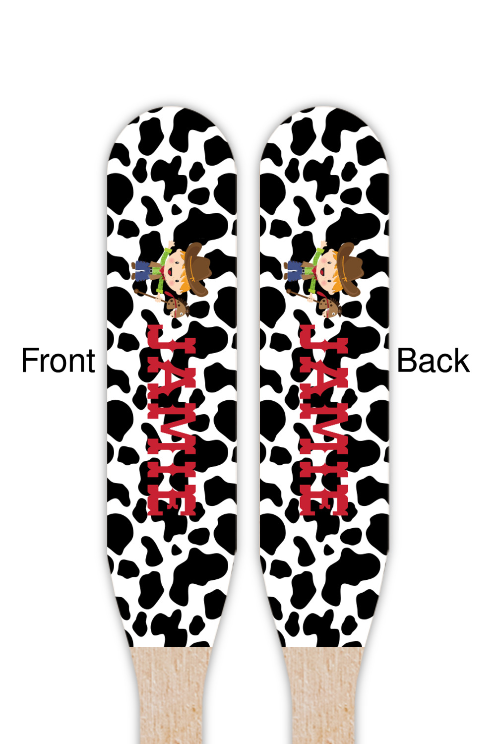 This western themed design is perfect for a cowboy or cowgirl. The background is cow print, with a red ribbon in the center. The label is made of rope and you can customize it by choosing a cowgirl or a cowboy.