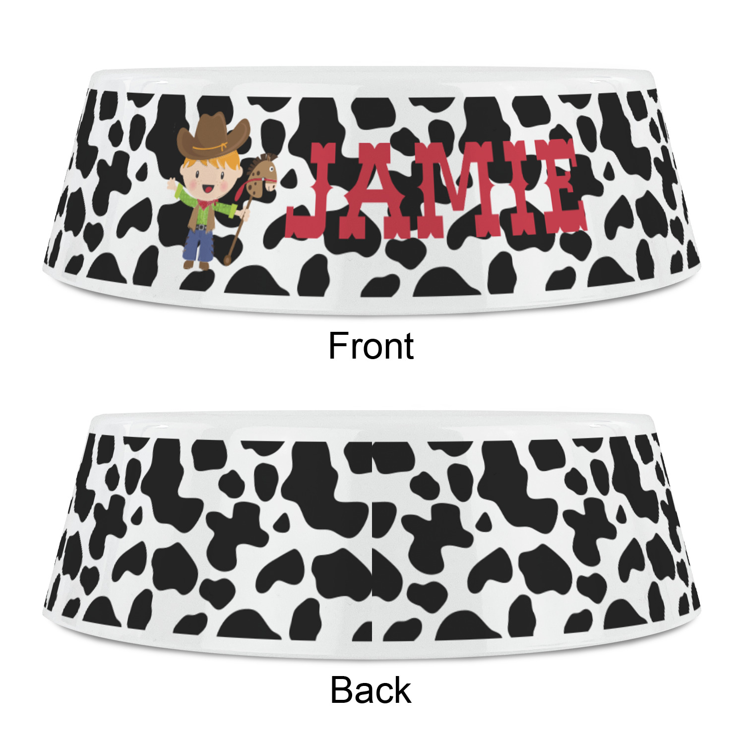 This western themed design is perfect for a cowboy or cowgirl. The background is cow print, with a red ribbon in the center. The label is made of rope and you can customize it by choosing a cowgirl or a cowboy.