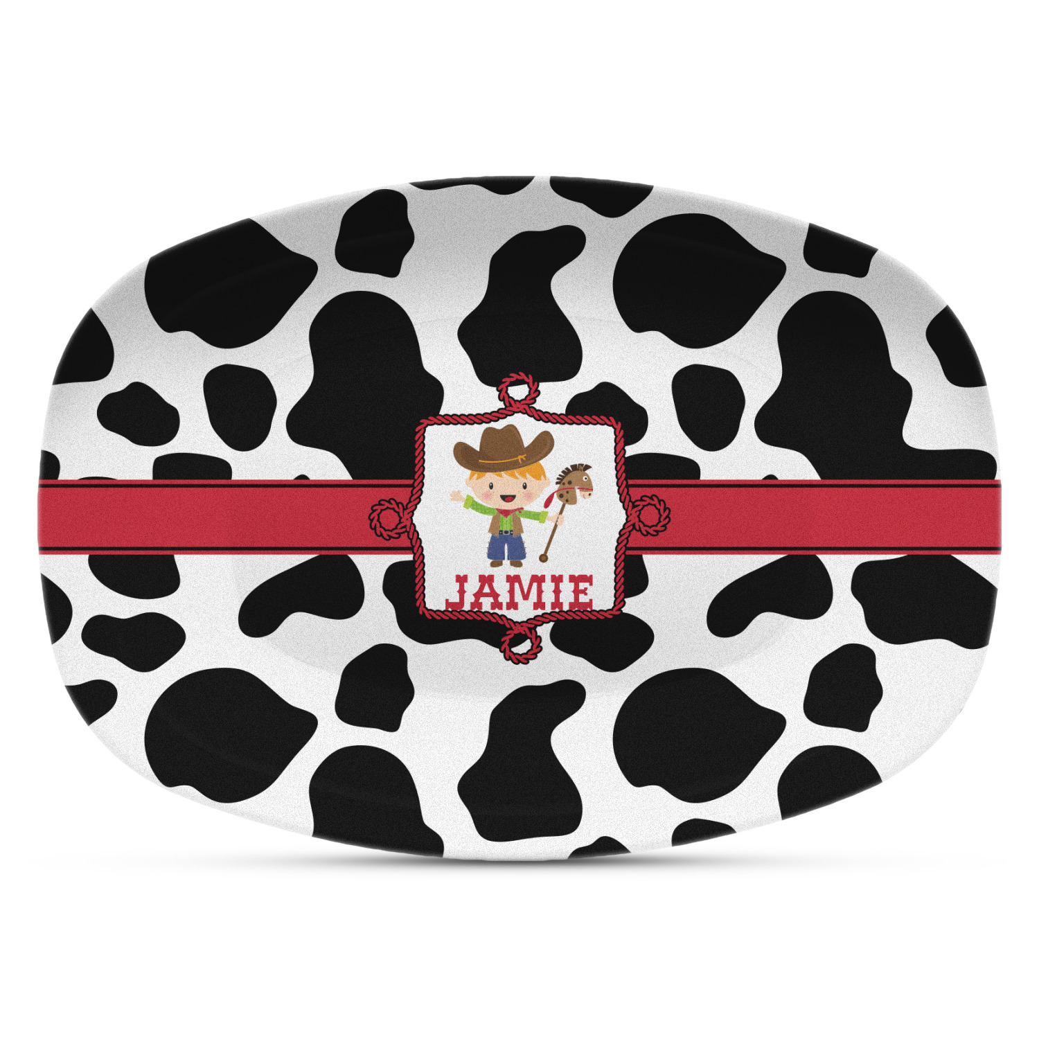 This western themed design is perfect for a cowboy or cowgirl. The background is cow print, with a red ribbon in the center. The label is made of rope and you can customize it by choosing a cowgirl or a cowboy.