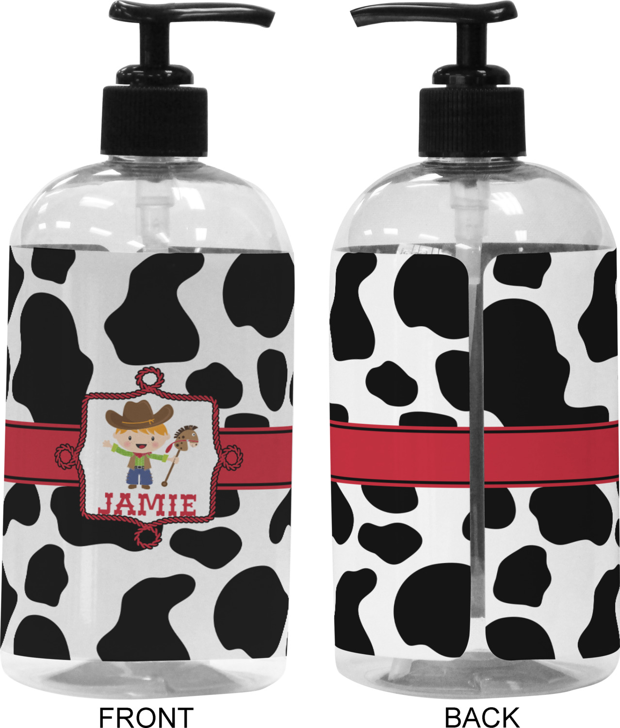 Our bottle dispensers are clear plastic with a black or white nozzle and are available in two sizes - 8 oz (2.25"D x 6"H) and 16 oz (2.5"D x 7"H) and can hold a variety of liquids. The large size (16 oz) is perfect for shampoo, conditioner, body soap / lotion while the smaller size (8 oz) is perfect for hand soap, lotion or face cleanser.