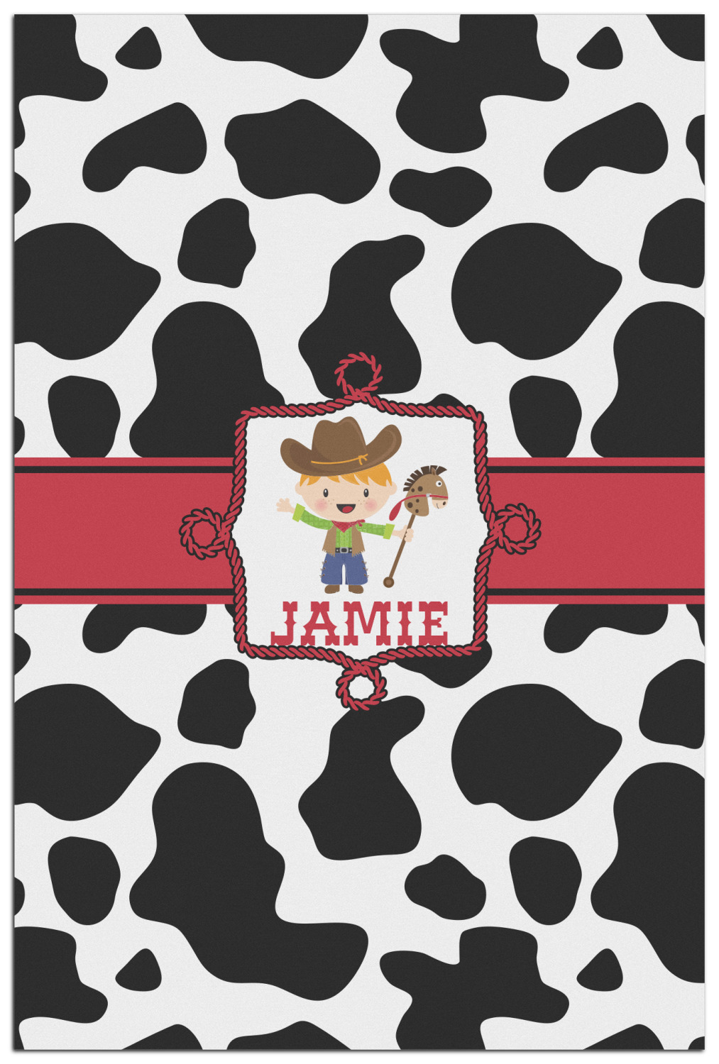 This western themed design is perfect for a cowboy or cowgirl. The background is cow print, with a red ribbon in the center. The label is made of rope and you can customize it by choosing a cowgirl or a cowboy.
