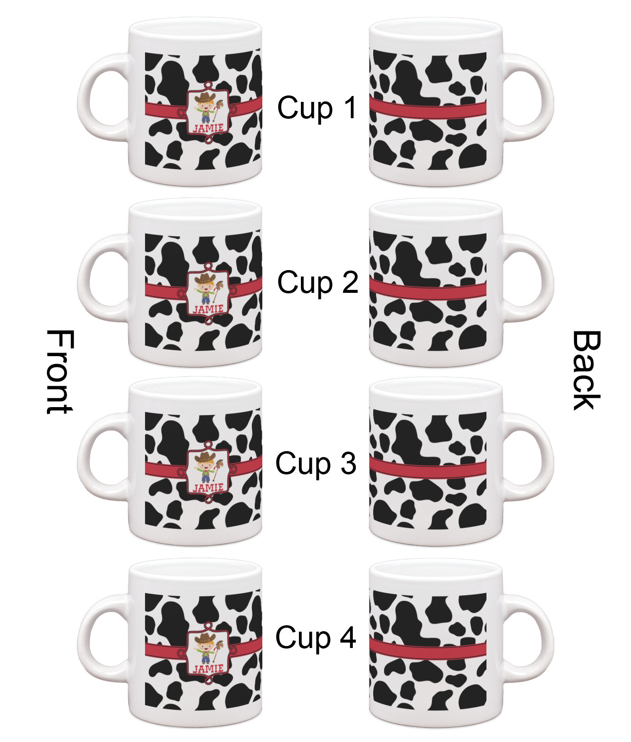 Each of our espresso mugs is a ceramic material sure to keep your drink warm. Personalize one cup for yourself, or order a set of 4! Its the perfect little gift for any coffee lover! We carry two sizes for you to personalize - 3 oz. (approx. 3.25" x 2.325" x 2.625") or 6 oz. (approx. 4" x 2.9" x 2.9"). Our 3 oz. mug is perfect for that single shot espresso while our 6 oz. mug can be your next favorite cappuccino cup holding two shots of espresso!