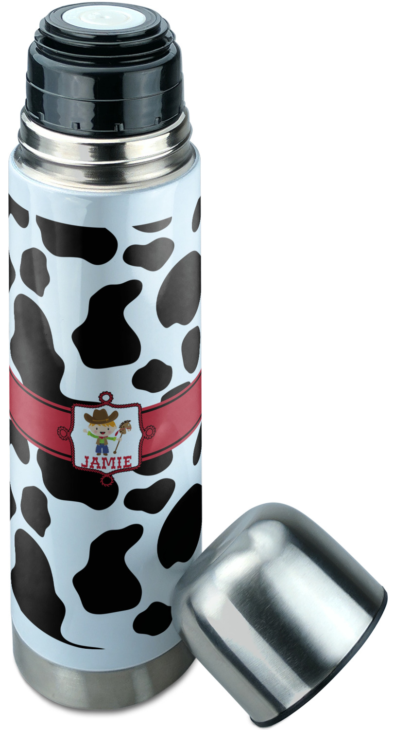 Manufactured from stainless steel, this thermos is built durably and double-walled insulated to preserve the temperature of your drink for hours. It also features a screw off lid that is made to also function as a small cup. Upon unscrewing this part of the thermos bottle, a pop-open, pour feature emerges. This feature allows you to slowly pour your beverage into your lid, ensuring a steady, controlled pour into your lid or other cup. With a capacity of 25 ounces, these large thermoses can hold several servings of your favorite beverage. Your customization is displayed all around the bottle with bright, vibrant color.
