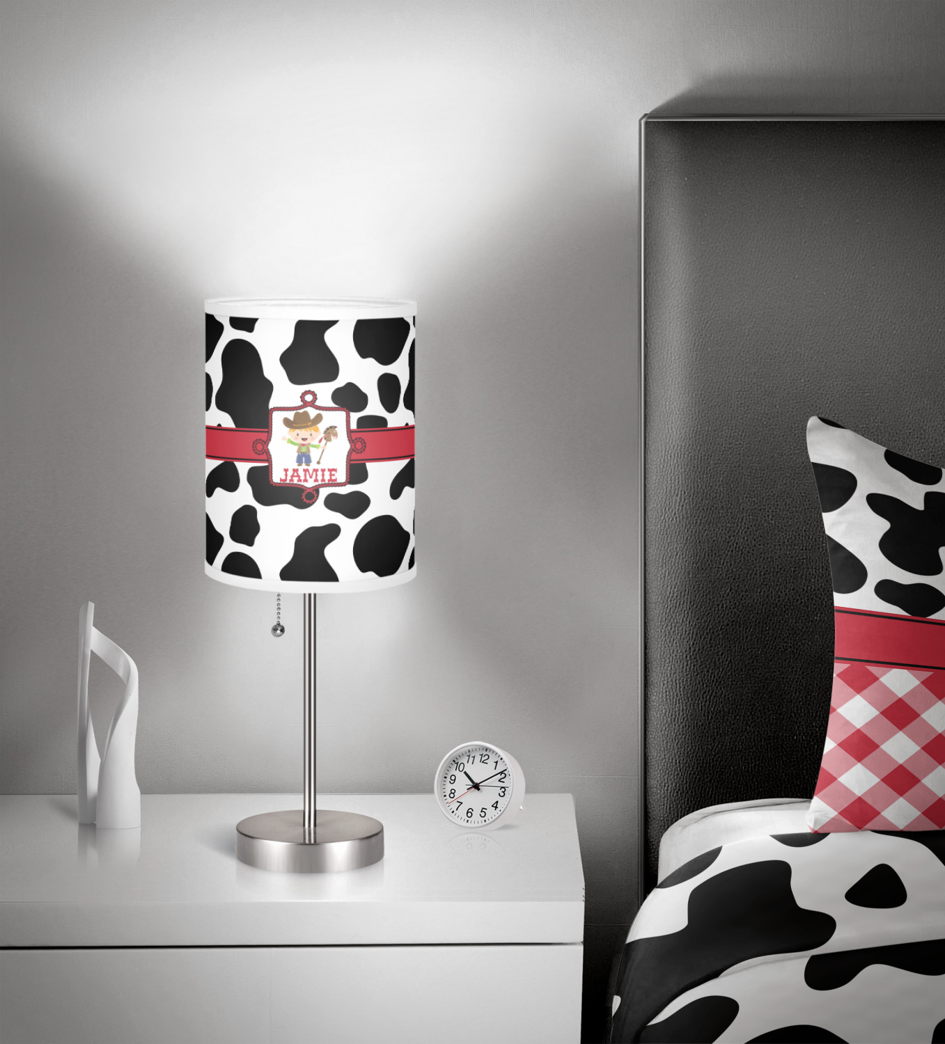This western themed design is perfect for a cowboy or cowgirl. The background is cow print, with a red ribbon in the center. The label is made of rope and you can customize it by choosing a cowgirl or a cowboy.