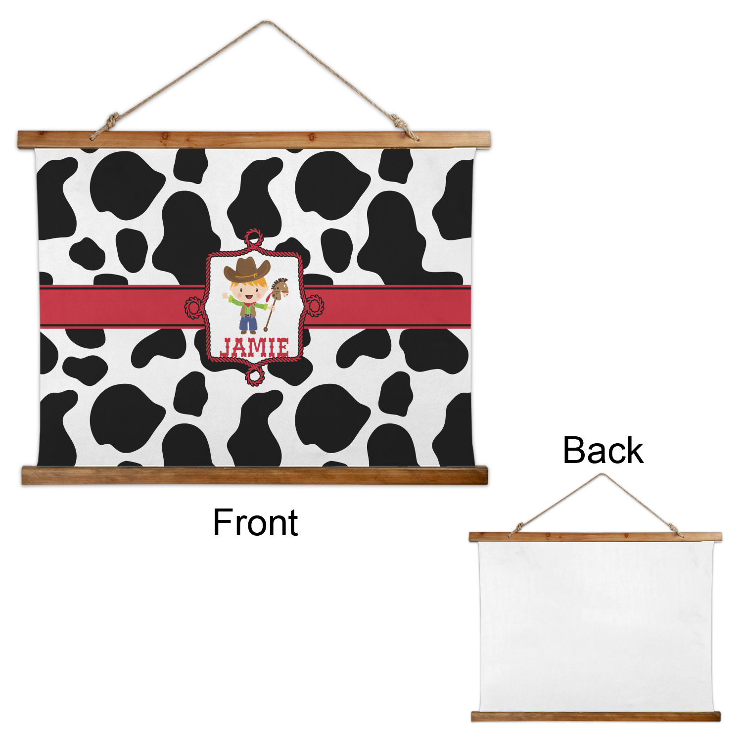 Made in two different orientations - portrait or landscape - both are 26" x 36". Your design is printed on a high quality polyester fabric with hemmed edges. The wood on the top and bottom of the tapestry is 1.25" tall and 0.25" thick and there are two pieces on top and bottom which sandwich the fabric.