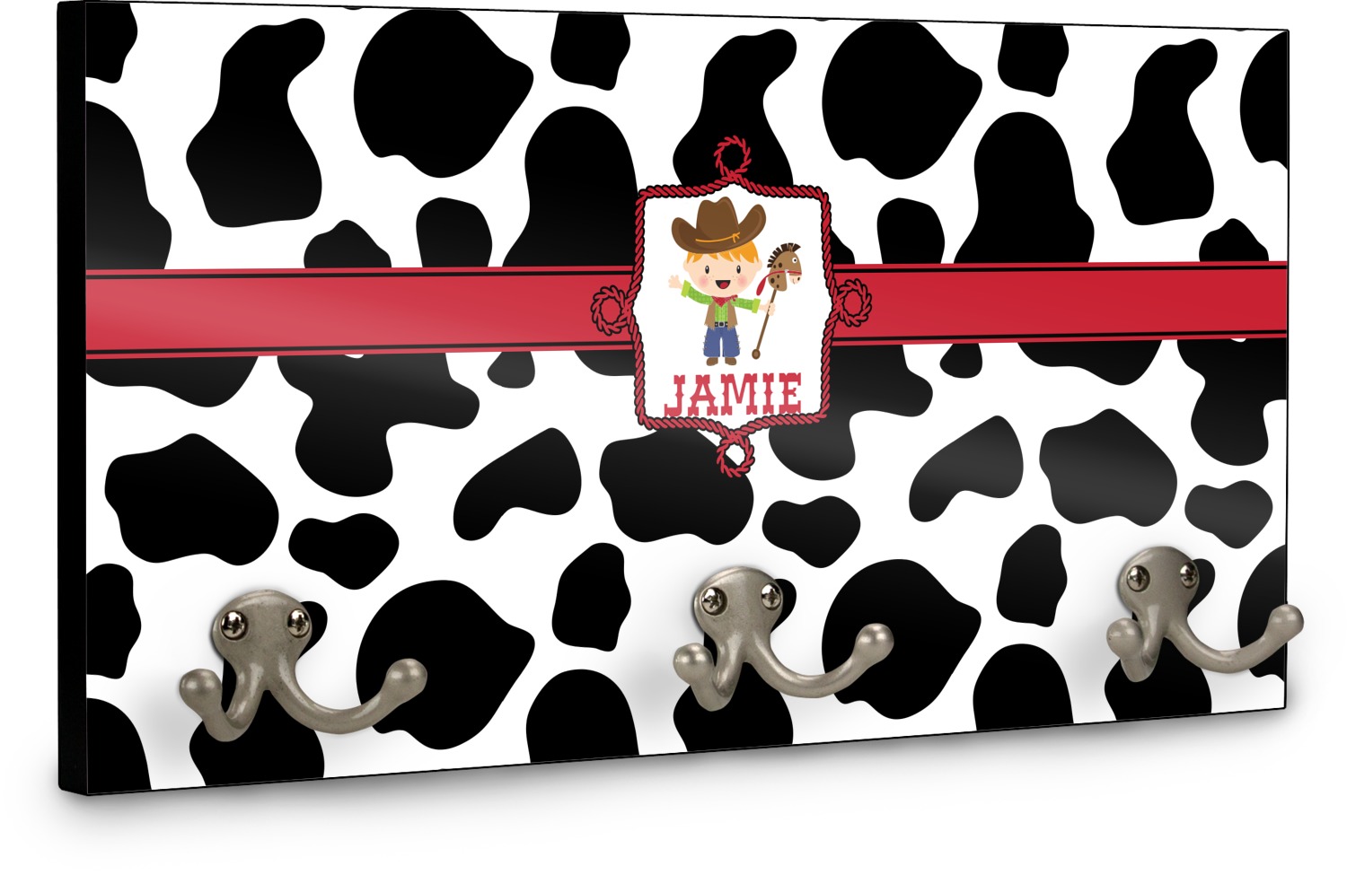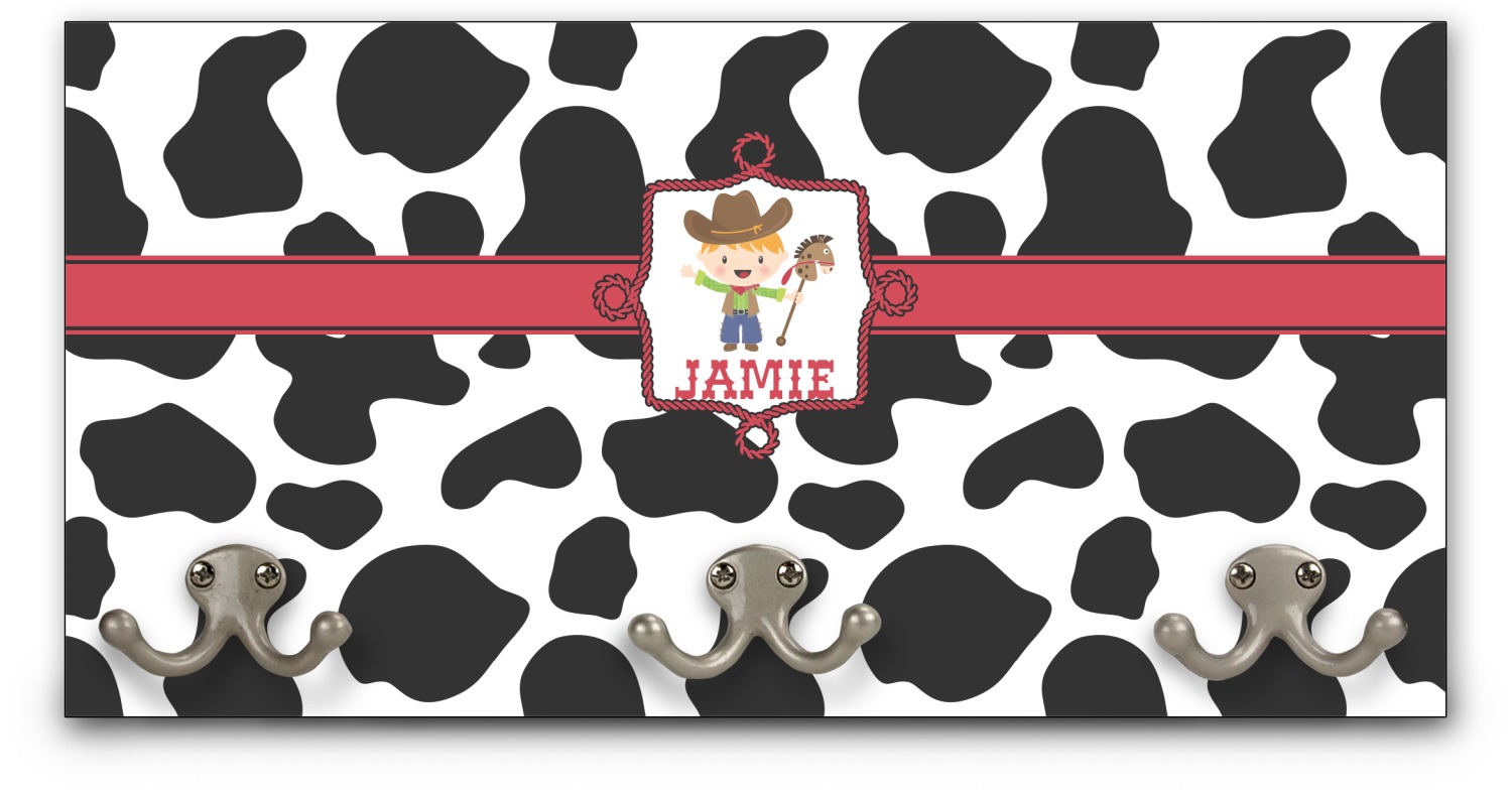 This coat rack is the perfect way to add some personality to your wall or entryway. The board is made of a strong maple that is approximately 16" x 8". The three 2-prong hooks are a sturdy metal that have three screws attaching them to the board. Your design is printed right onto the front of the board while the back and sides are a simple black.