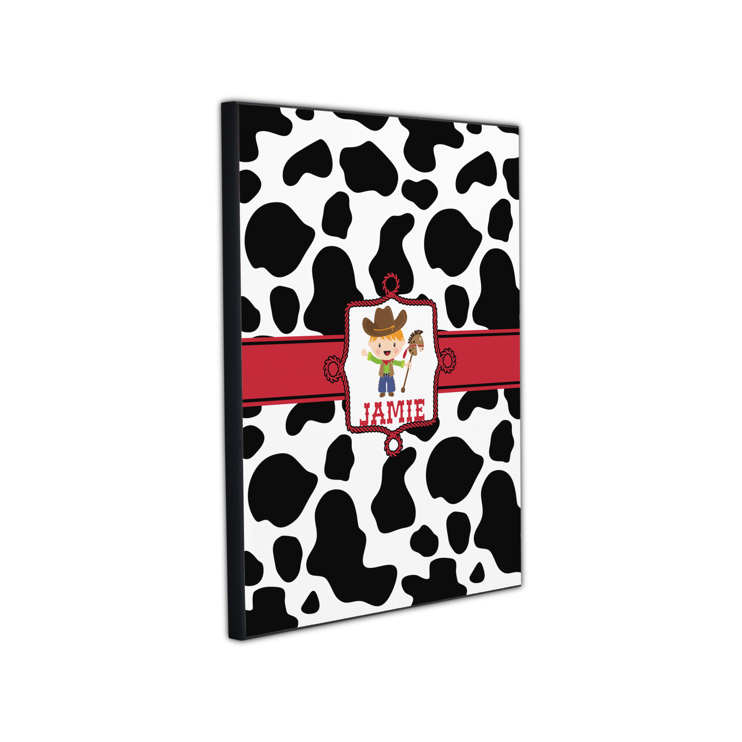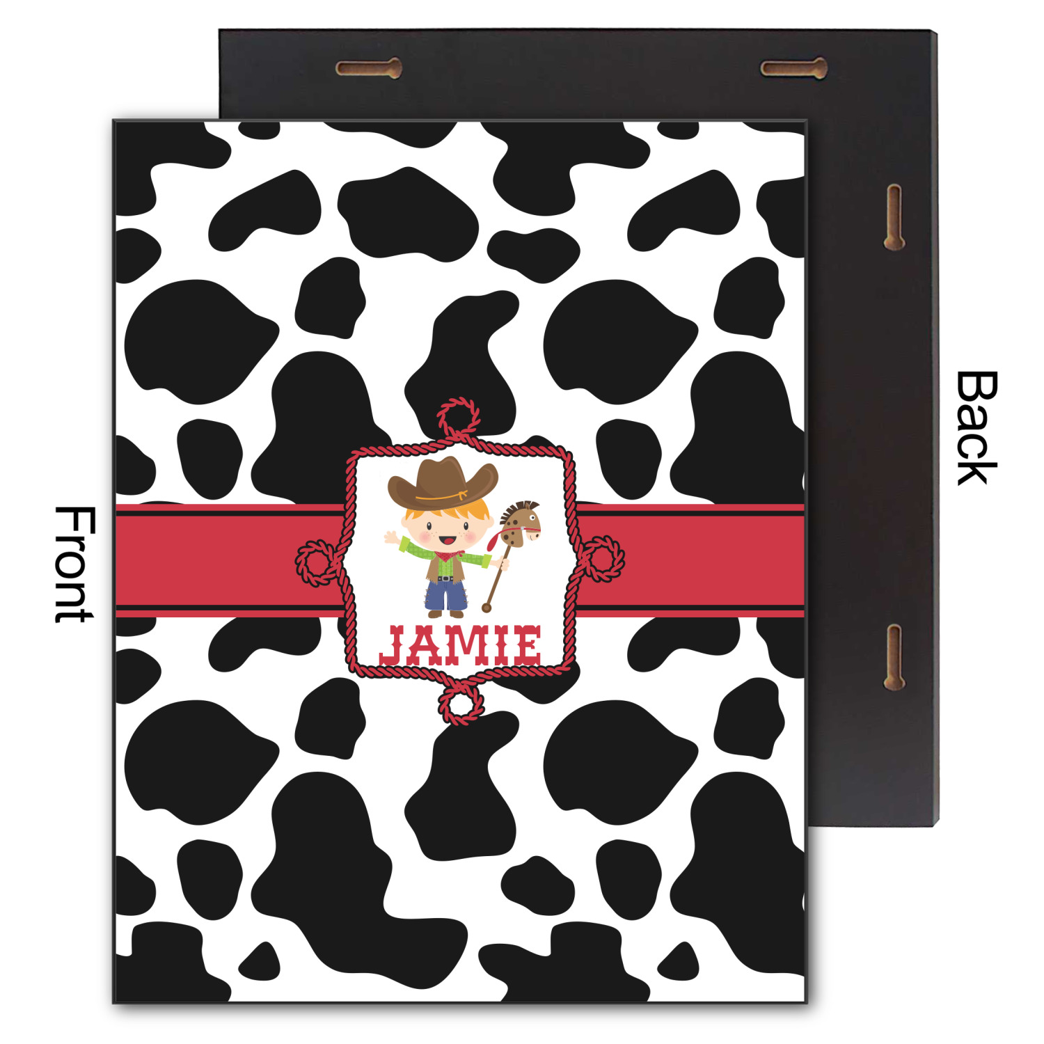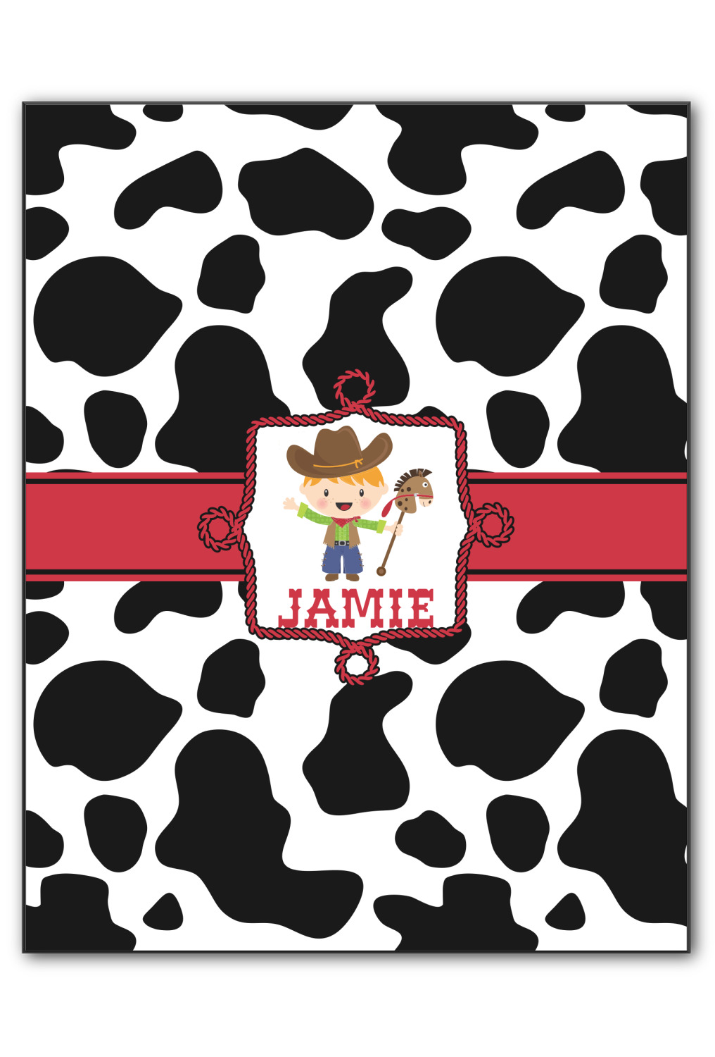 This western themed design is perfect for a cowboy or cowgirl. The background is cow print, with a red ribbon in the center. The label is made of rope and you can customize it by choosing a cowgirl or a cowboy.