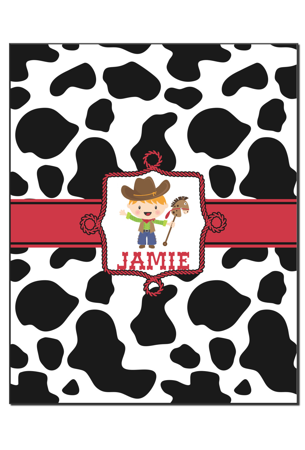 This western themed design is perfect for a cowboy or cowgirl. The background is cow print, with a red ribbon in the center. The label is made of rope and you can customize it by choosing a cowgirl or a cowboy.