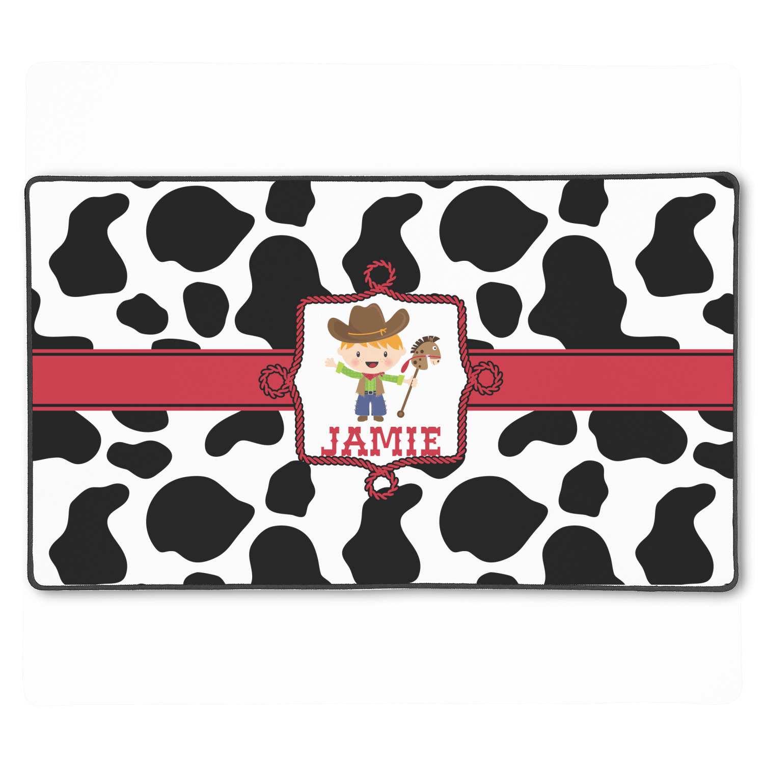 This western themed design is perfect for a cowboy or cowgirl. The background is cow print, with a red ribbon in the center. The label is made of rope and you can customize it by choosing a cowgirl or a cowboy.