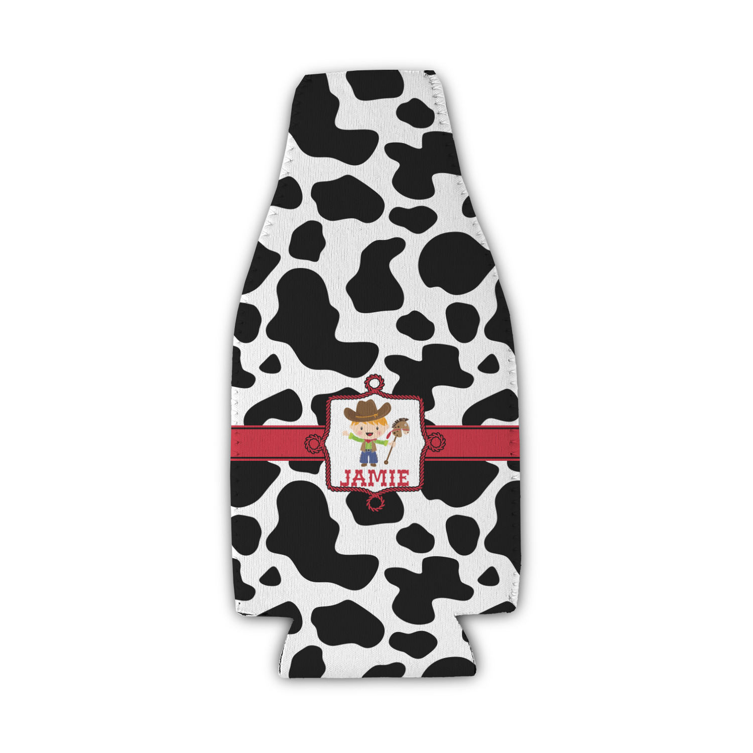 This western themed design is perfect for a cowboy or cowgirl. The background is cow print, with a red ribbon in the center. The label is made of rope and you can customize it by choosing a cowgirl or a cowboy.
