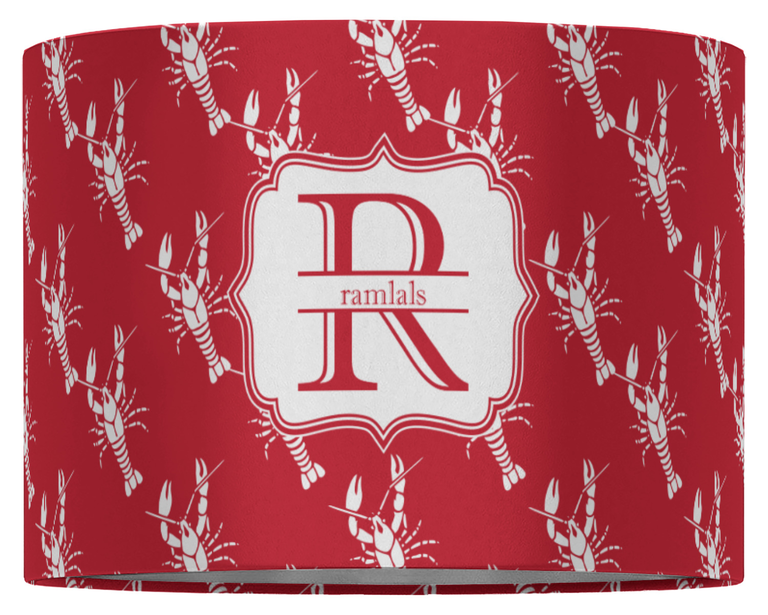The design is done is a red background with white crawfish, while the personalization is inside a beautiful decorative rectangular frame. The personalization style is an initial along with the name.